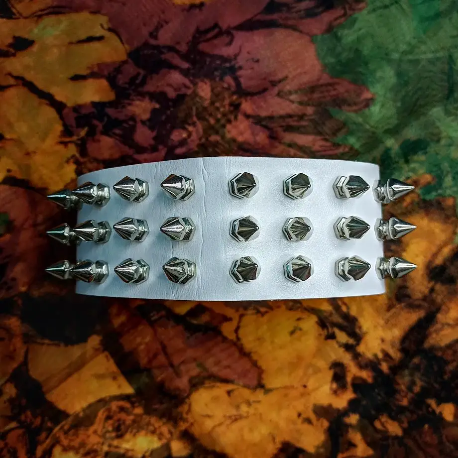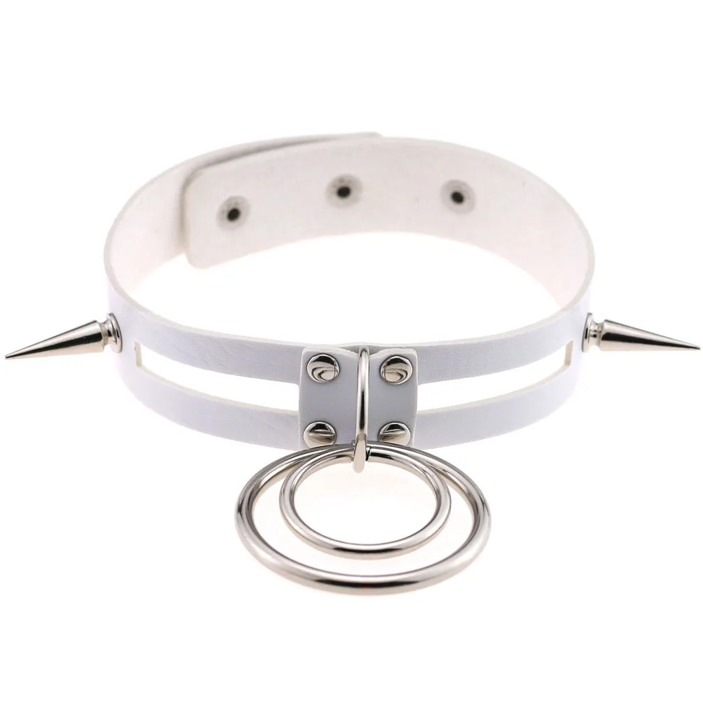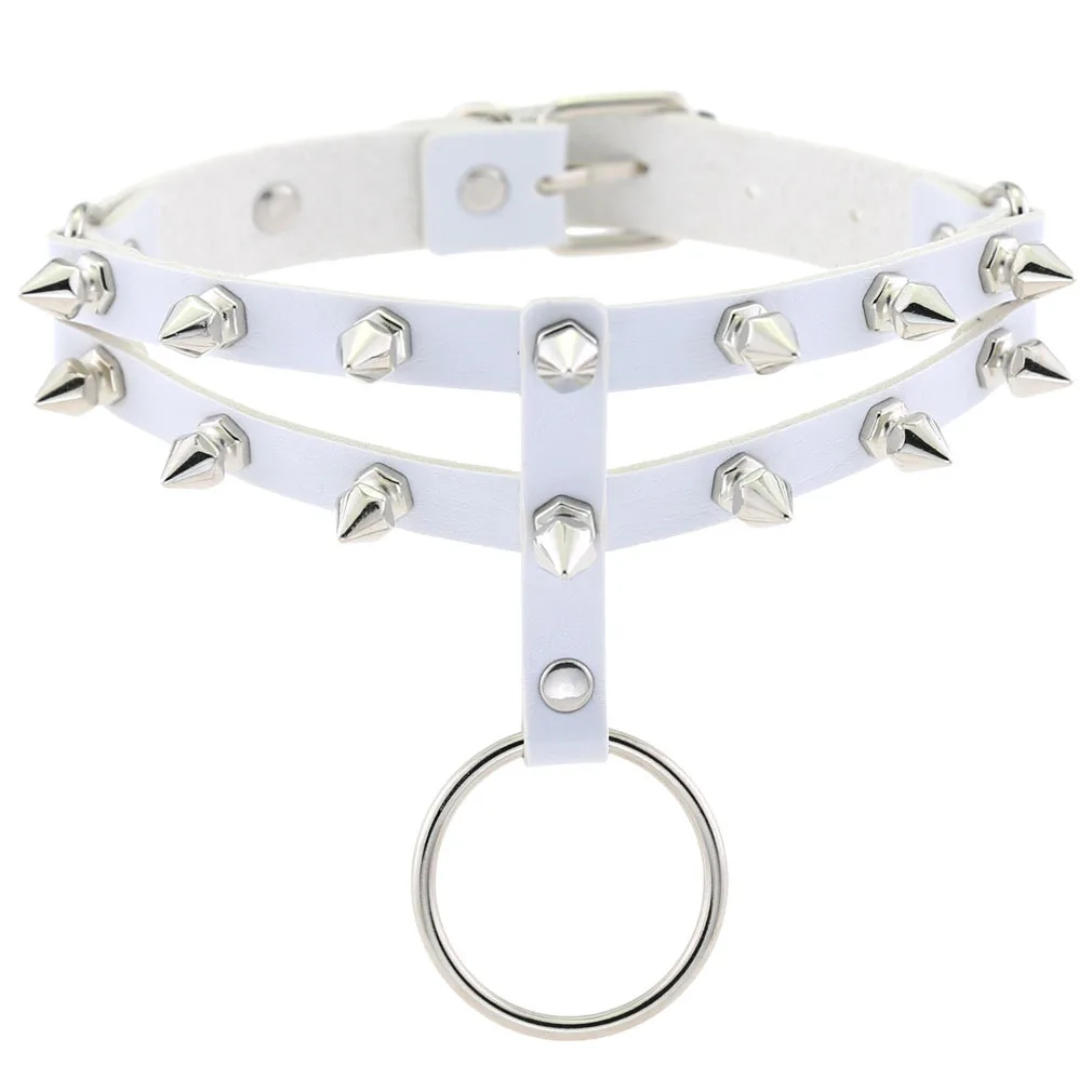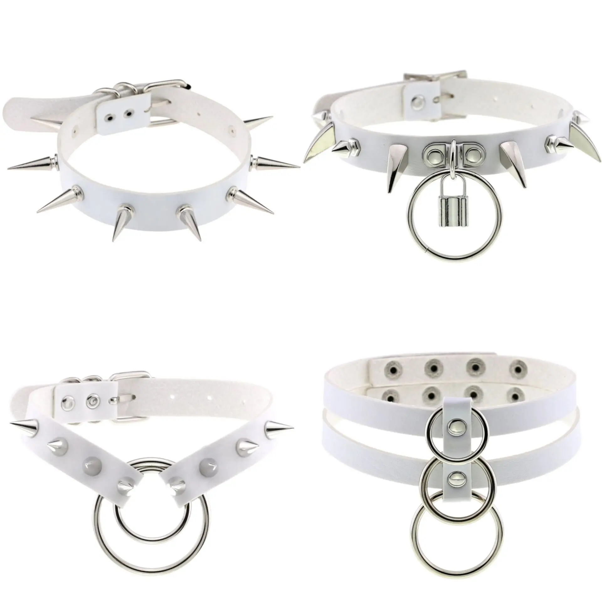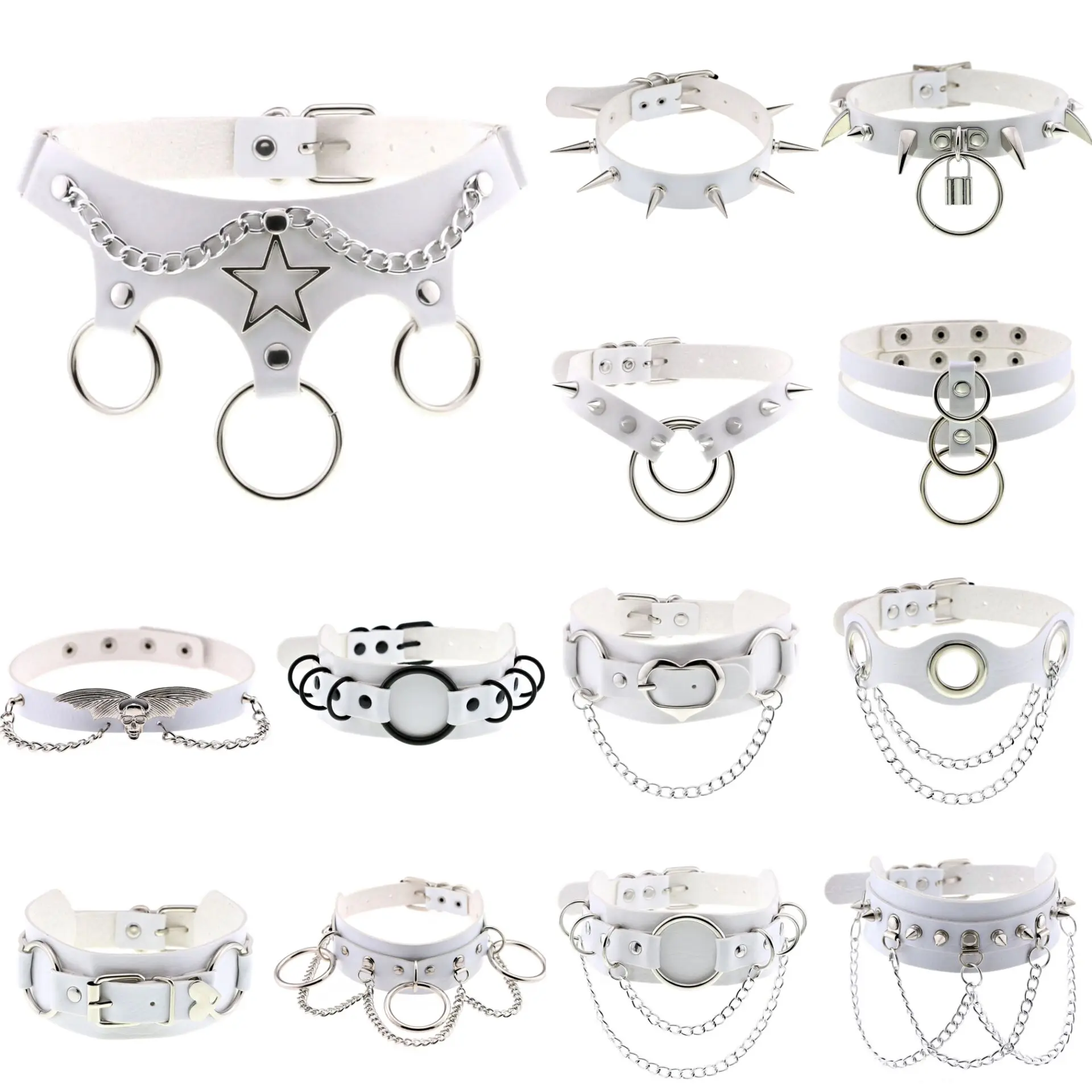 Женское Ожерелье из искусственной кожи, белое колье с шипами и заклепками, в готическом стиле, с круглой звездой, вечерние