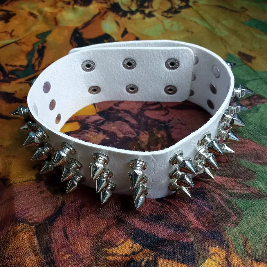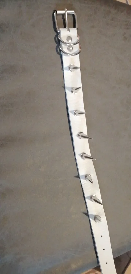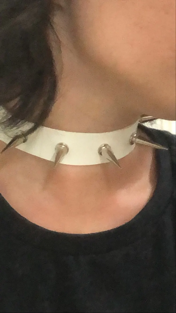 Чокер классный, толстенький, металл тяжёлый, шипы острые, что ещё сказать?)))) У меня шея достаточно тонкая и мне скорее всего надо укоротить хвостик оставшийся, я думаю это спокойно аккуратно можно сделать острым канцелярским ножом или хорошими ножницами. А так, все супер. *приехало за 12 дней до Москвы, учитывая, что я заказала 11.11, в самый пик