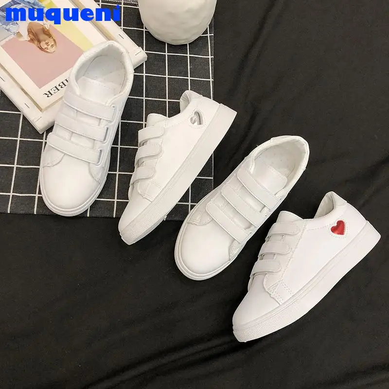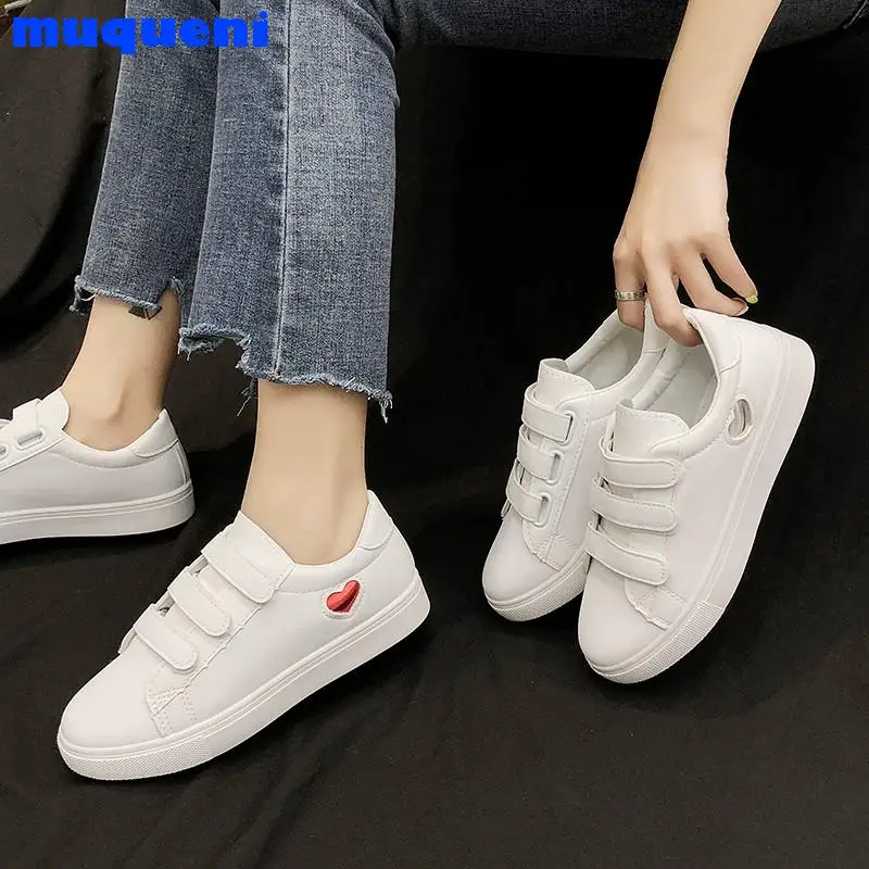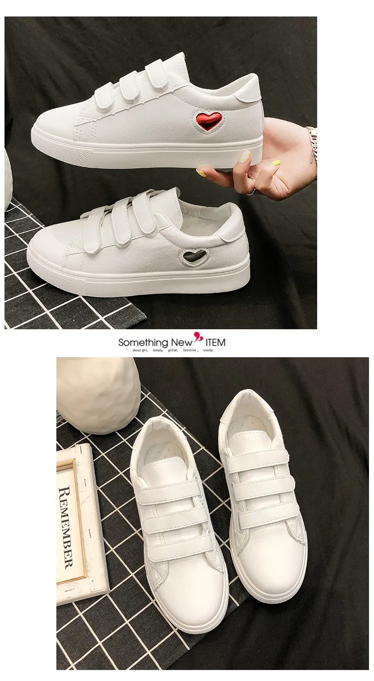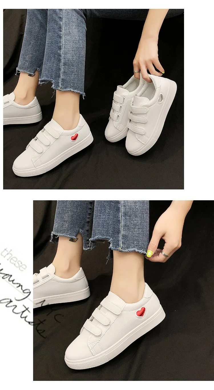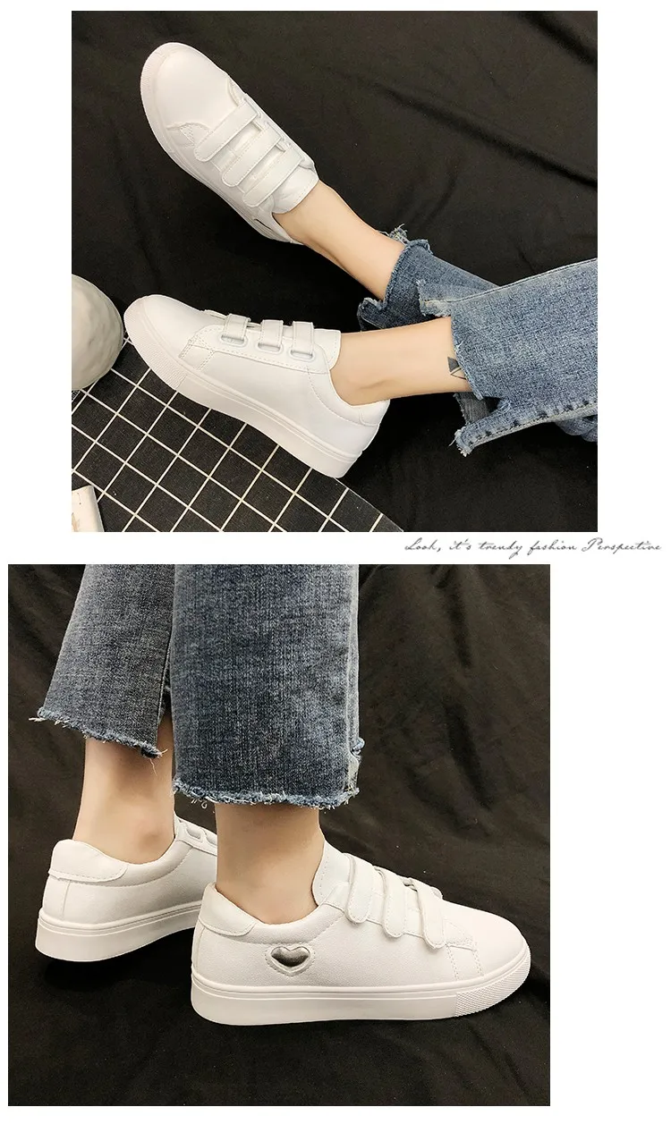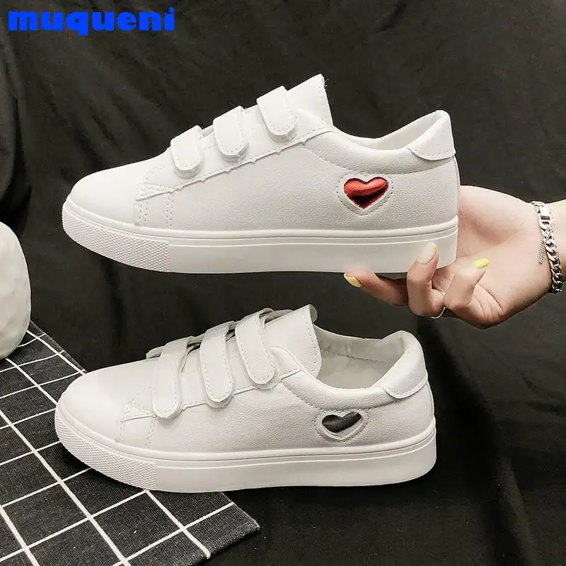 Женские кожаные кроссовки, Вулканизированная плоская подошва, удобная повседневная обувь с милым сердечком, на платформе, весенний тренд