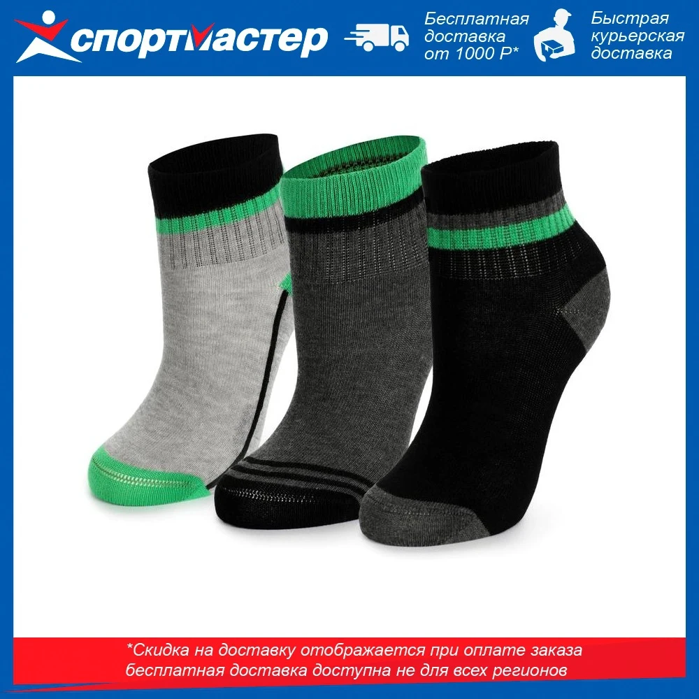 Детские спортивные носки из материала с высоким содержанием хлопкаДетали: эластичная воздухопроницаемая ткань, дизайн с контрастными полосами, 3 пары в комплекте.