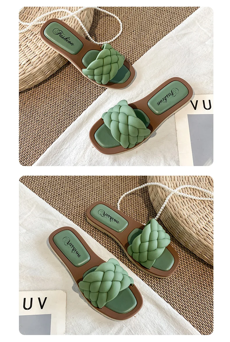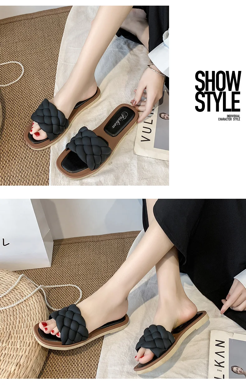 Женские темпераментные тапочки YISHEN, плетеный дизайн, комплект с открытым носком для отпуска, пляжные сандалии на плоской подошве, повседневные шлепанцы, женская обувь