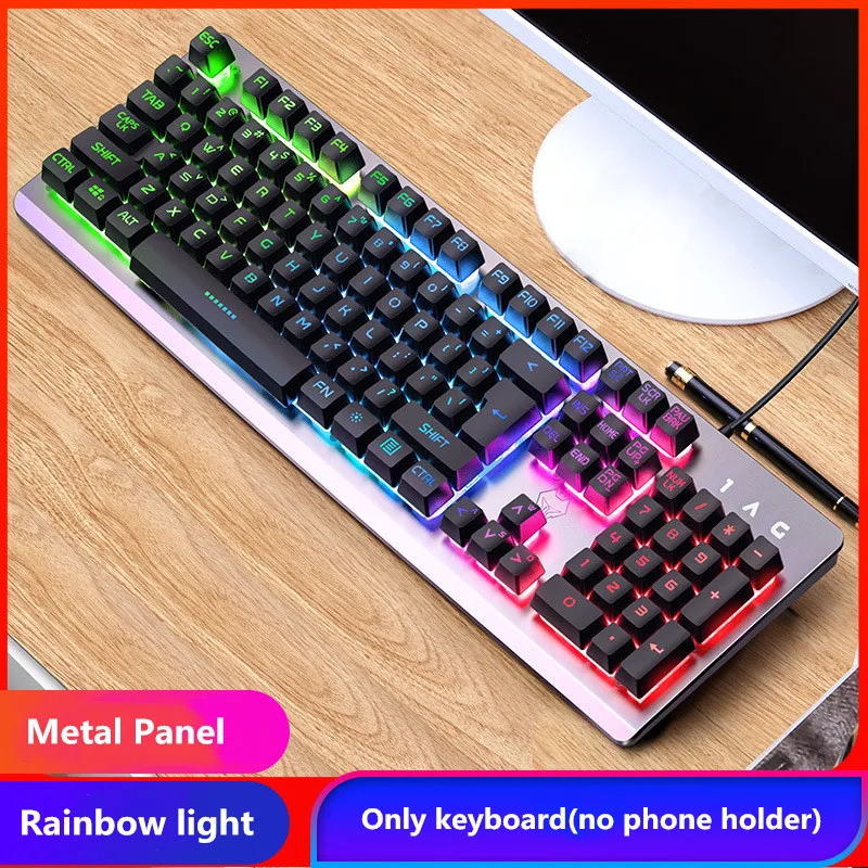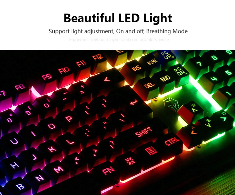 Тип: Проводная клавиатура Материал: металл + пластик Клавиатура Размер: 48*19,5*4 см (104 ключи) Мышь Размер: 13,5*7,8*3,2 см Вес клавиатуры: около 830 г Вес нетто мыши: около 142 г Мышь DIP:1600 --- 2000 --- 2400 --- 3200 регулируемая