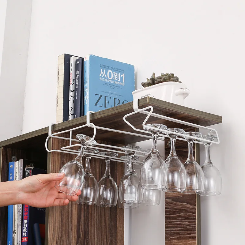 Подставка для Винных Бокалов под шкаф, подвесной органайзер для хранения стаканов, стеллажи для посуды, двухрядная металлическая полка без гвоздей