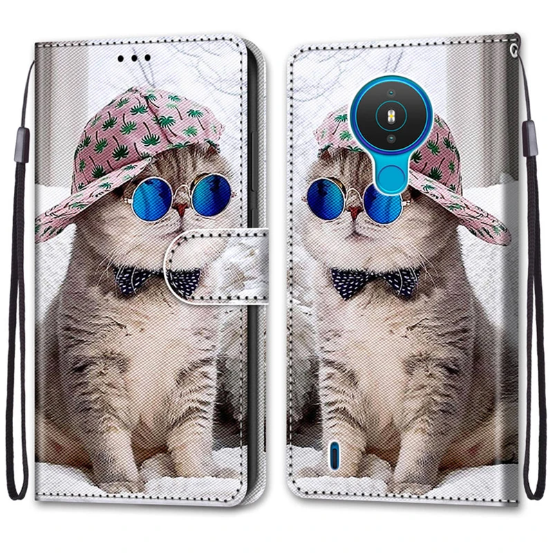 Чехол с мультяшным котом для Nokia 1,4 2,3 2,4 3 3,4 5 5,3 5,4 C2, кожаный ремешок, подставка для телефона, защитный чехол для Nokia Coque Fundas Etui