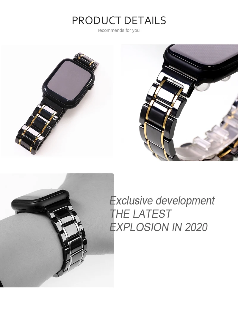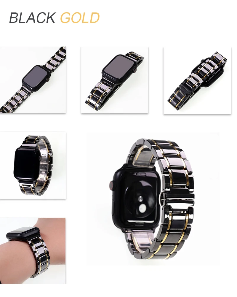 Ремешок керамический из нержавеющей стали для Apple Watch Band 6 5 SE 44 мм 40 мм 38 мм 42 мм, браслет для iwatch series 6 5 4 3 2 1