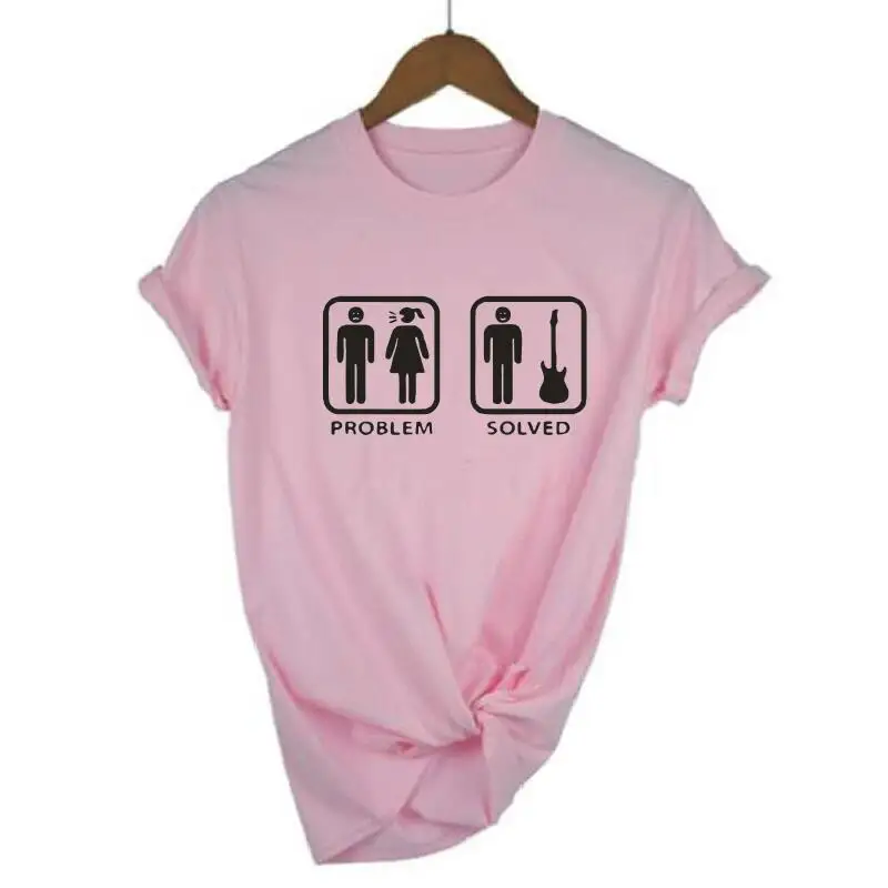 Модная футболка, Женская Повседневная забавная футболка с надписью Проблема решающая гитара, женские топы, летние женские Топы с коротким рукавом, женские футболки в стиле Харадзюку