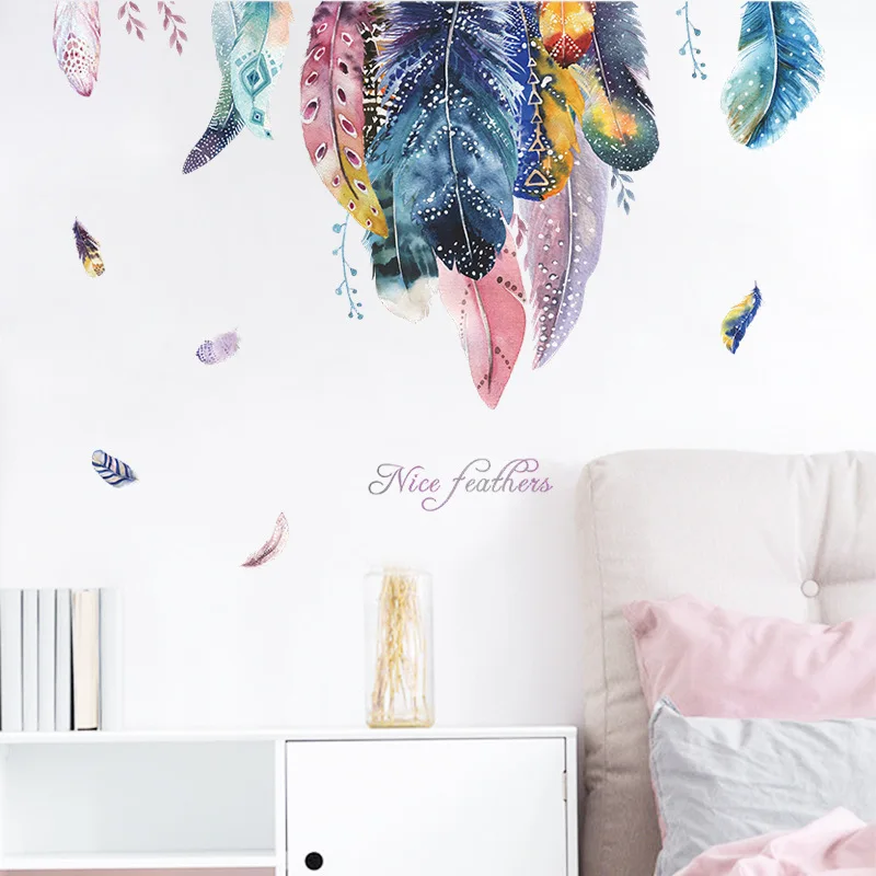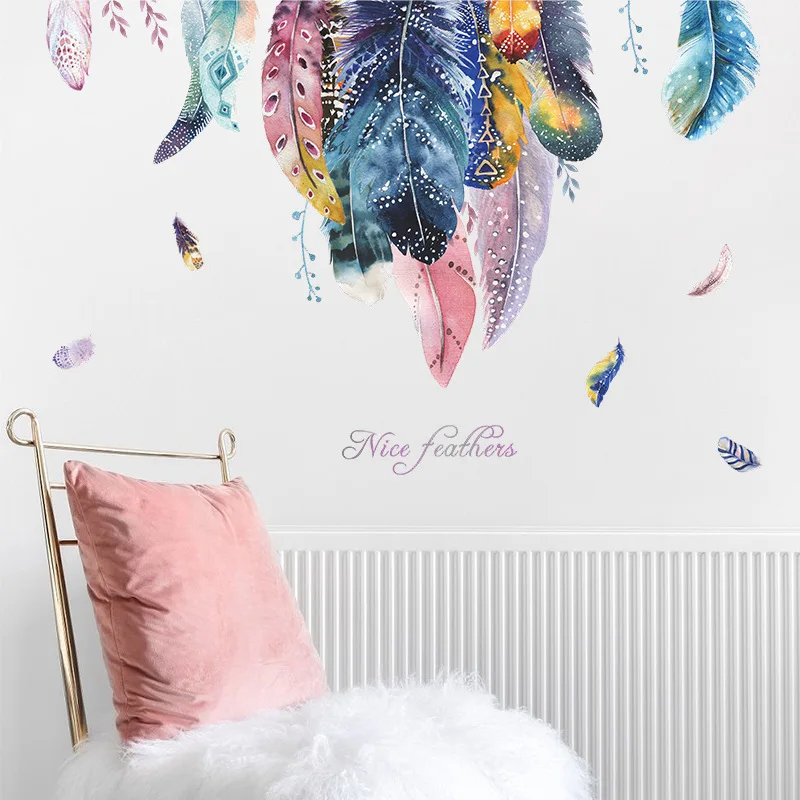 Большая красочная Настенная Наклейка с перьями, Ловец снов montercatch, художественный дизайн для гостиной, дверная наклейка для детской комнаты s