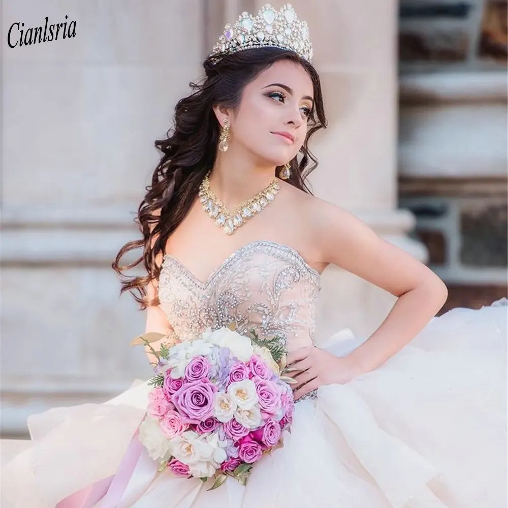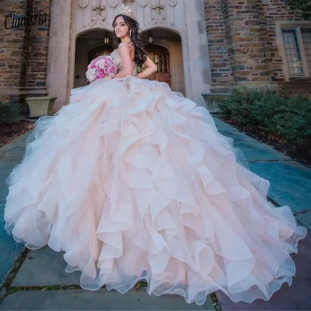Бальное платье цвета шампанского из тюля, платье для Quinceanera 20...