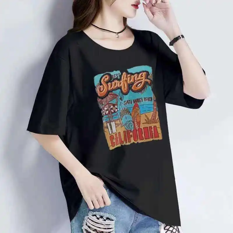 Белая футболка, летняя повседневная футболка большого размера, женский топ с коротким рукавом в стиле ретро, Санта-Моника, Калифорния, Саудовская Аравия, для отпуска