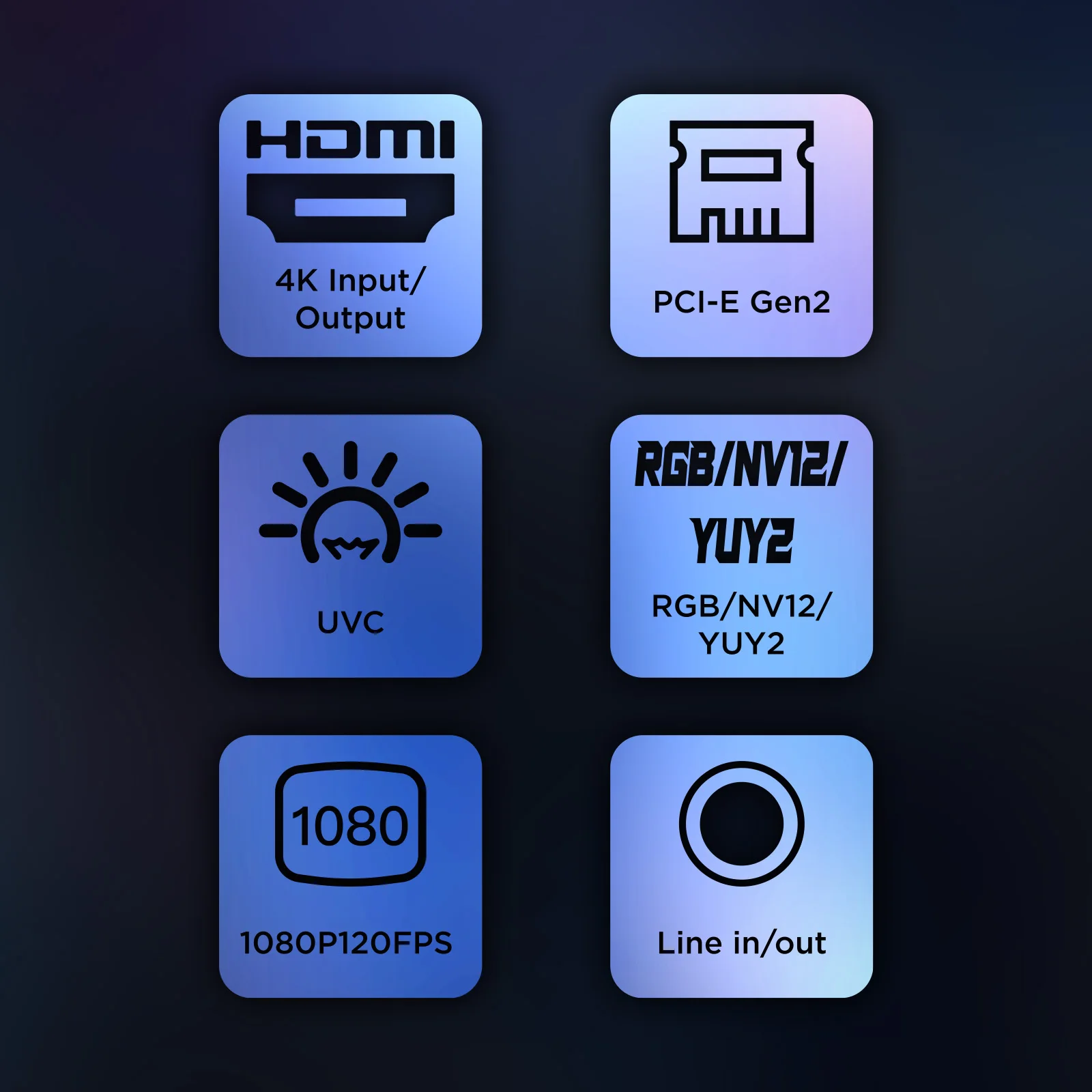 4K @ 30fps 1440p @ 60fps 1080p @ 120fps HDMI петля PCI-e Карта видеозахвата коробка для записи игр ПК живого потокового Устройства YUY2 NV12 RGB