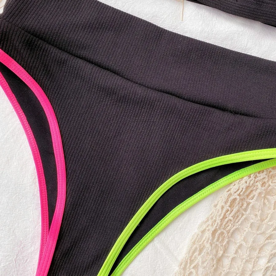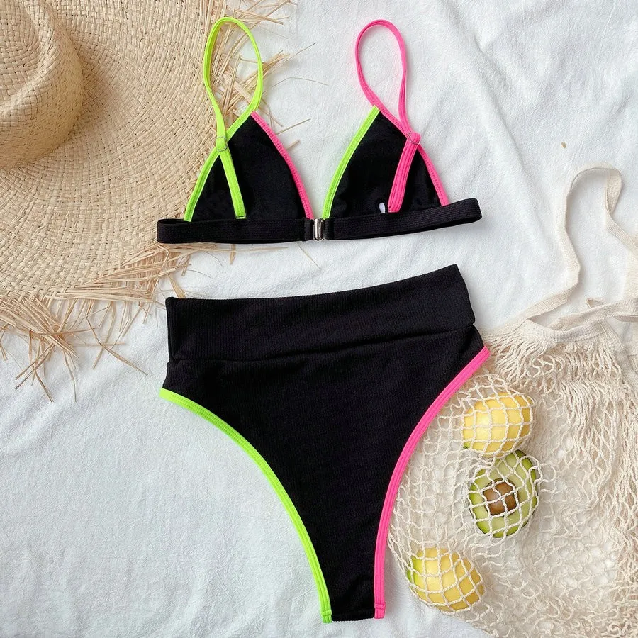 Сексуальное бикини трикотажный бюстгальтер и трусики с принтом, купальник с высокой талией, Однотонный женский, для бассейна вечерние, пляжная одежда, шикарное бикини