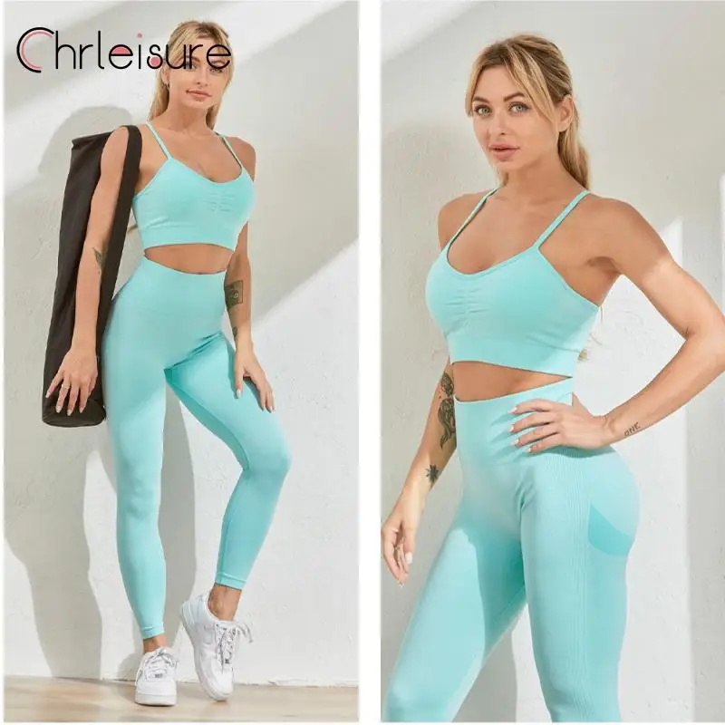 Комплект Спортивный Женский, бесшовный, с бюстгальтером и леггинсами