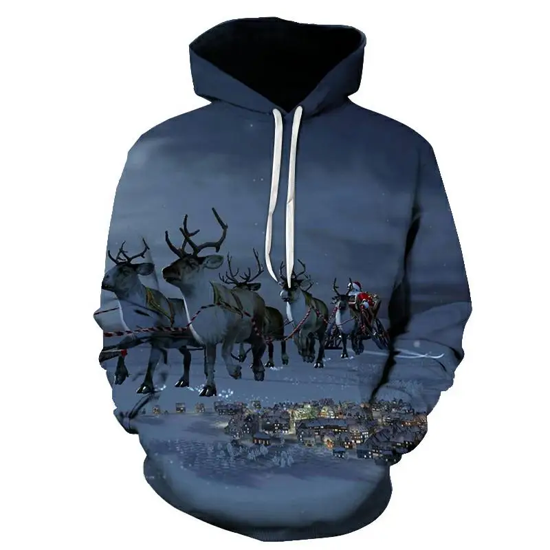 Свитшоты унисекс для мужчин и женщин, 3d худи с рождественским прин...