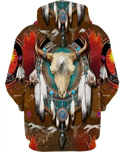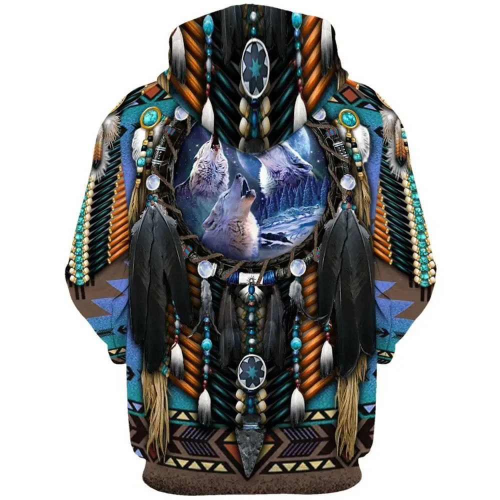 Мужское зимнее пальто 2021, худи с 3D принтом родного индейского бу...