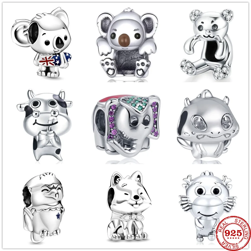 Новые искусственные серебряные бусины коала, собака, овечка, слон, животные, бусины для рукоделия, подходят для оригинальных браслетов Pandora, ювелирные изделия