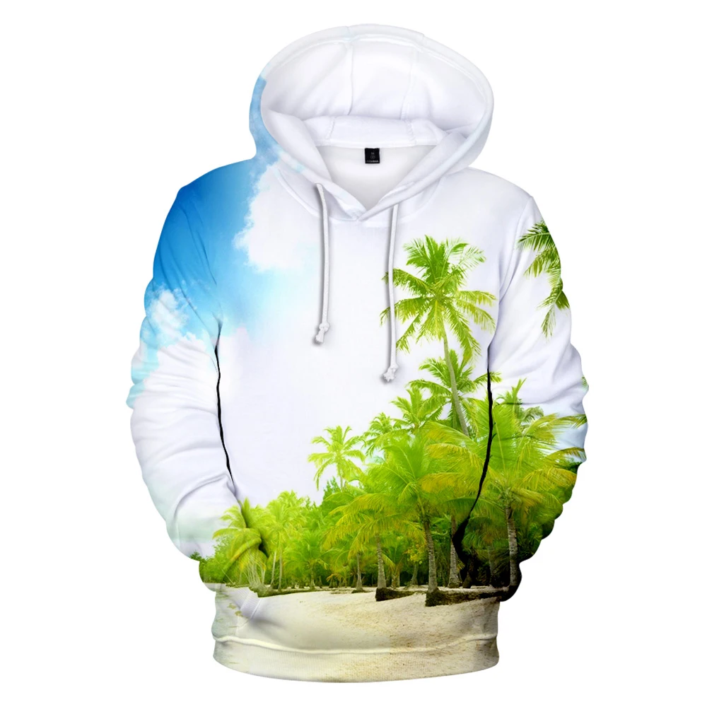 3D принт, пляжные толстовки для мужчинженщин, мужчин, пуловер с капюшоном, красивые морские кокосовые пальмы, 3D толстовки Harajuku, Толстовка для мужчин, 3D