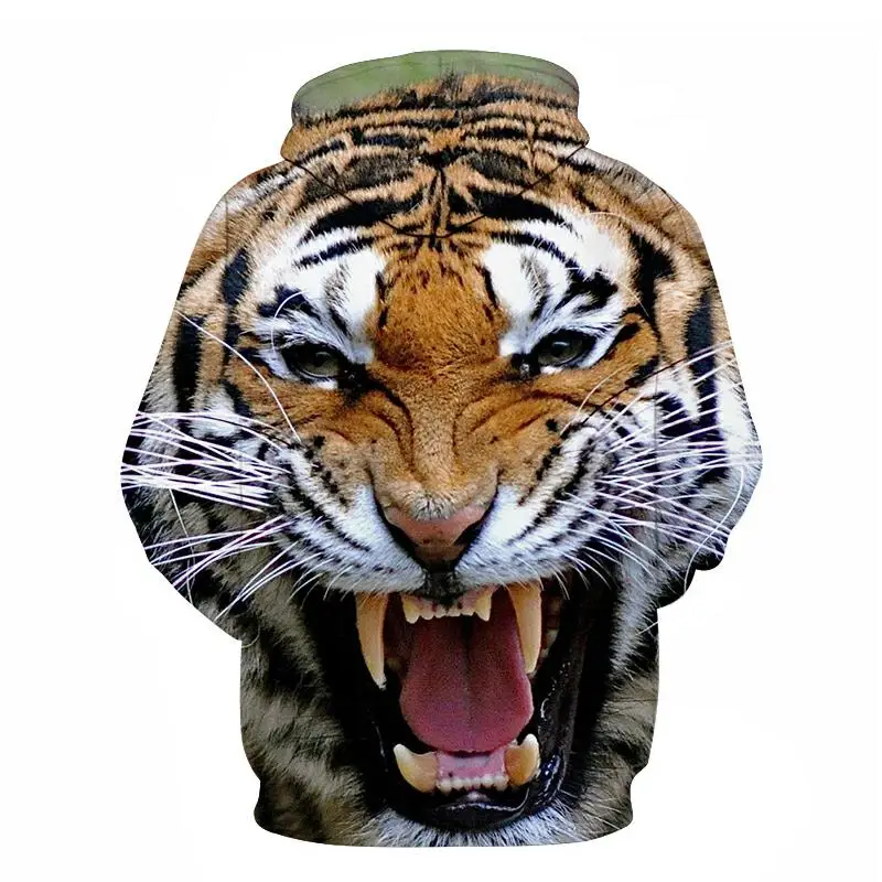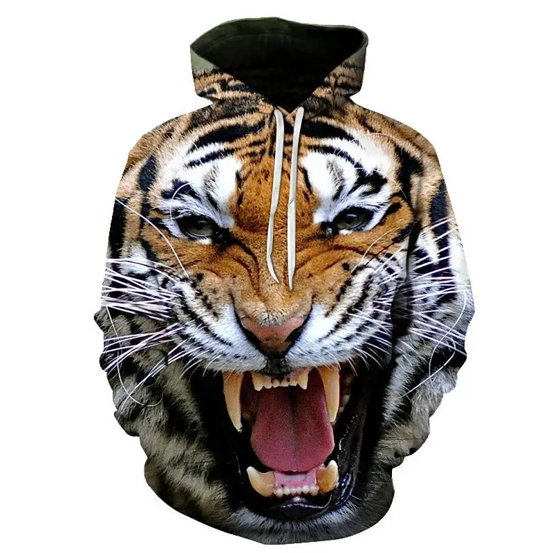 Мужскиеженские толстовки с капюшоном, ветровка, свитшоты, модная брендовая одежда на осень и зиму с принтом тигра, Льва, животных