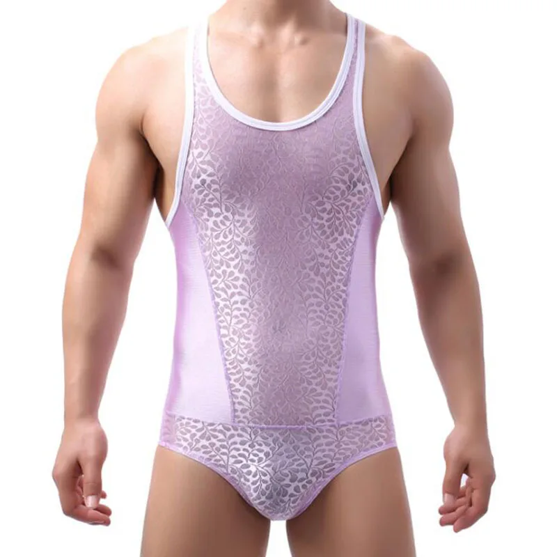 Мужской комбинезон, сексуальное нижнее белье для геев, с U-образным выпуклым мешочком, кружевное нижнее белье, мужские майки для борьбы, женские топы, Шейперы