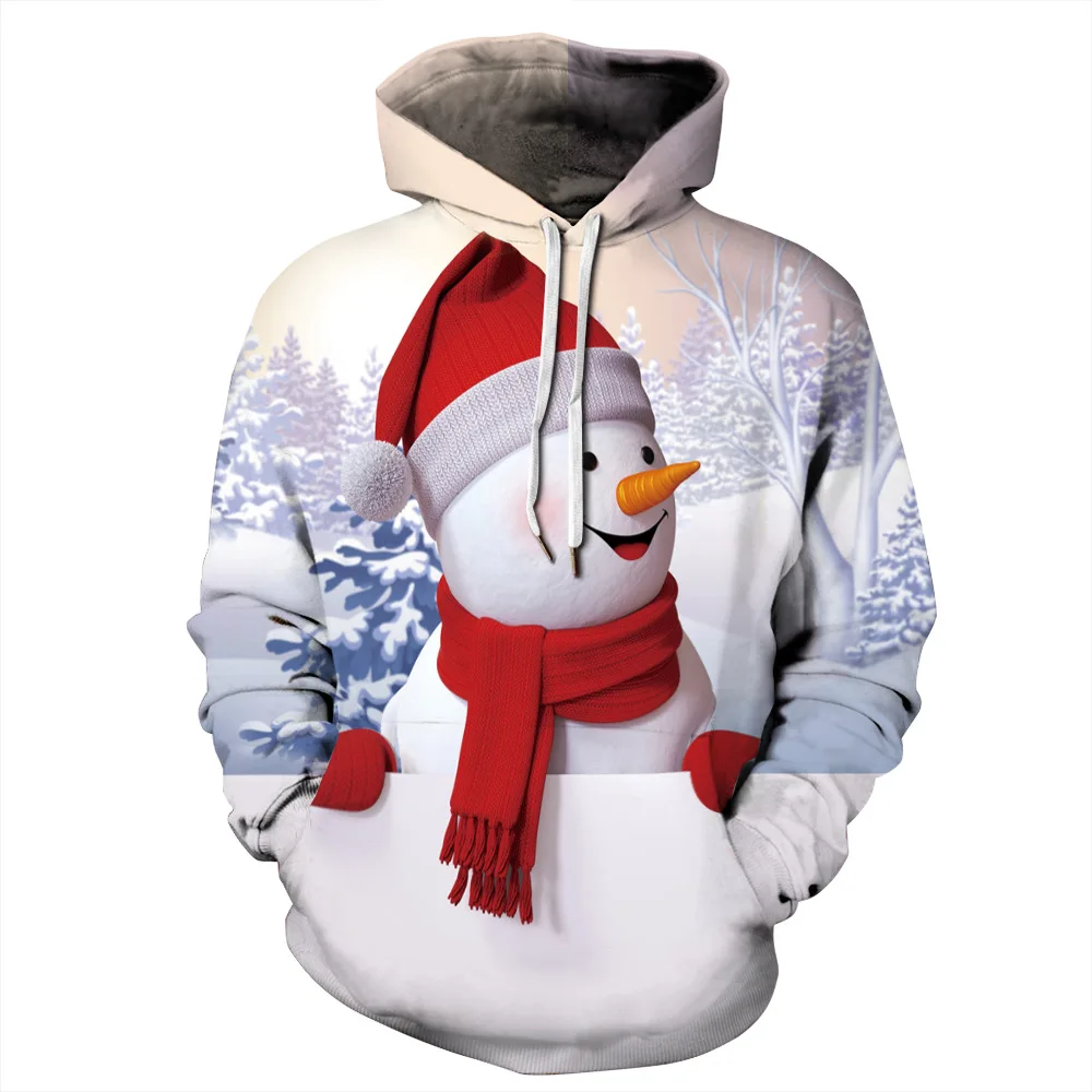 Рождественские мужские и женские толстовки, мужские толстовки с 3D принтом, осеньзима, модные толстовки со снеговиком