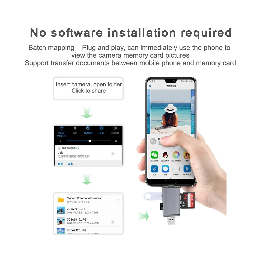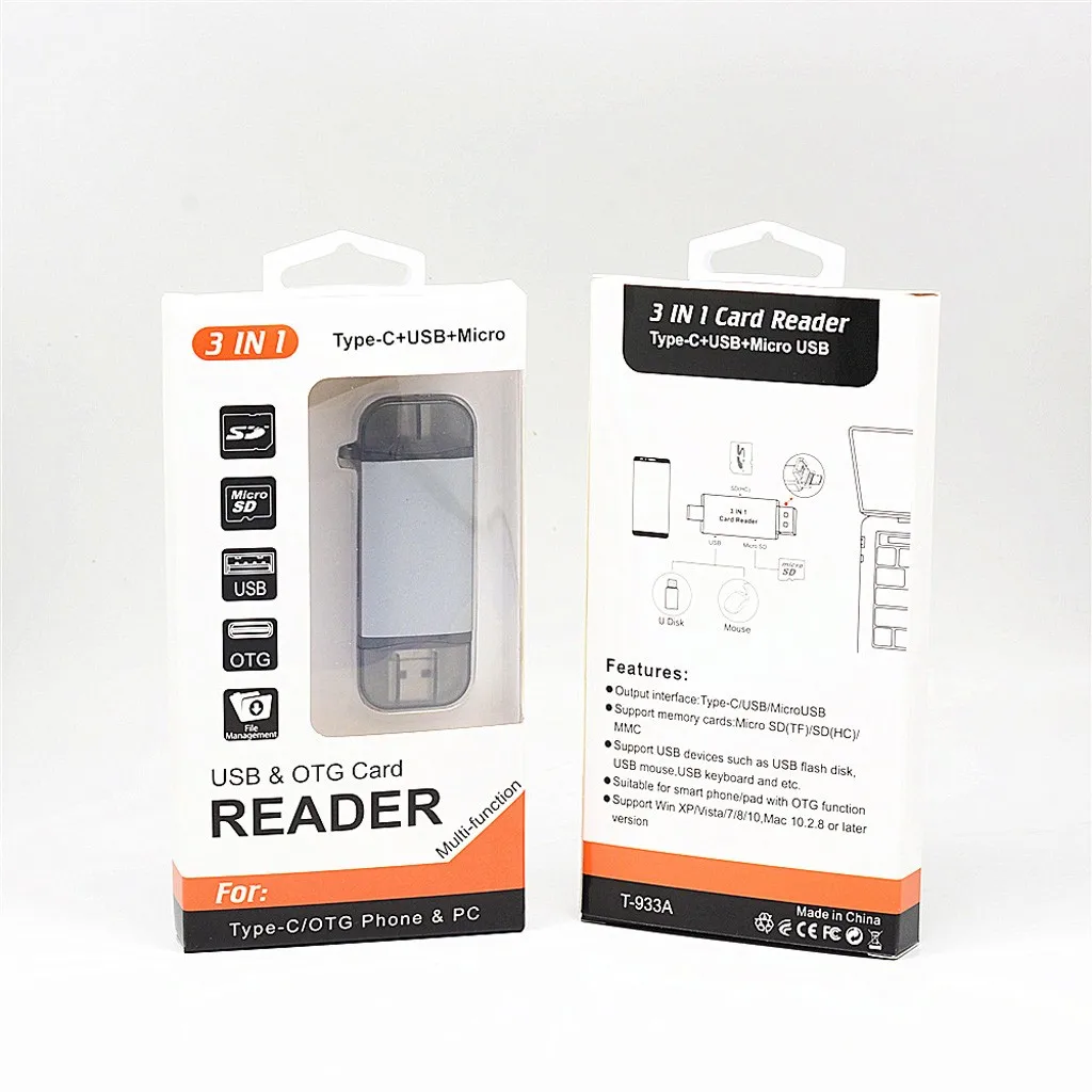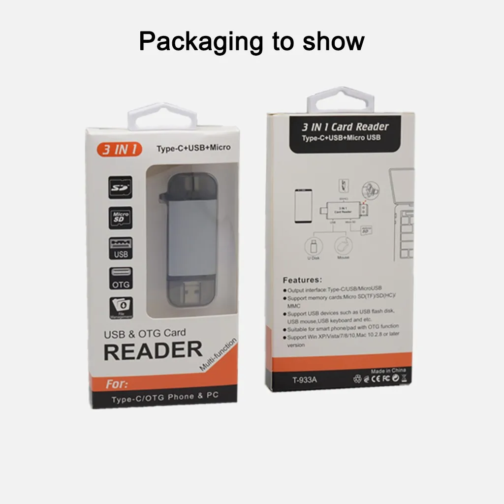 Выход Интерфейс: Type-C/USB/MicroUSB Поддержка карт памяти: Micro SD(TF)/SD(HC)/MMC Поддержка usb-устройств, таких как USB флэш-диск, USB мышь, USB клавиатура и т. Д. Подходит для смартфона/планшета С функцией OTG Поддержка WIN XP/VISTA/7/8/10,MAC 10.2.8 или более поздняя версияУпаковка: