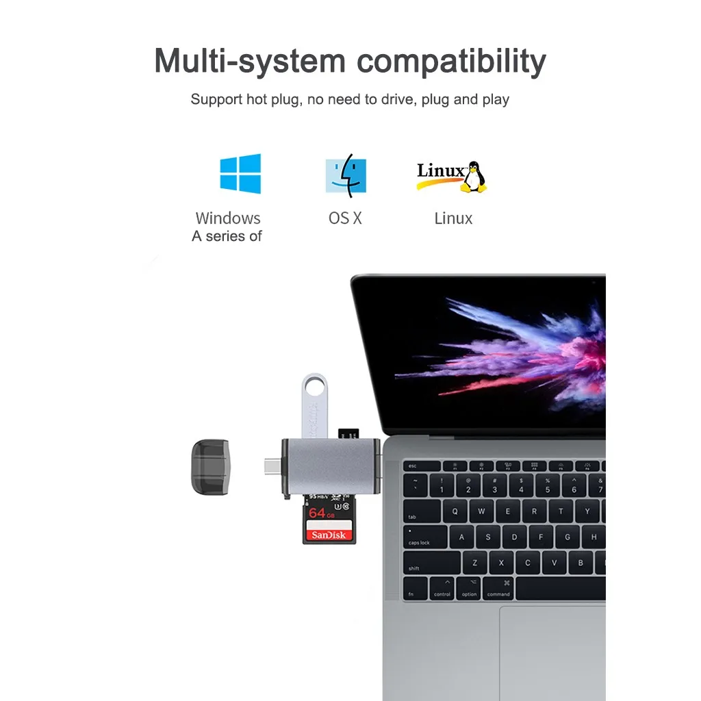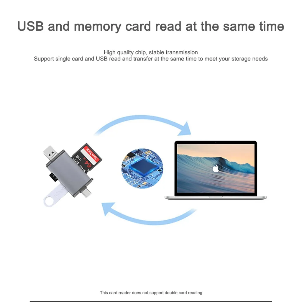 Кардридер type c, адаптер OTG для ноутбука, смарт-флэш-накопителя, Micro USB, 5 Гбитс