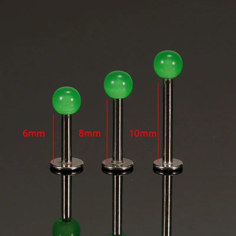 2 шт., 16 г, светящиеся пирсинг для губ, пирсинг, кольца, хирургическая сталь, акриловый шар, 6 мм, 8 мм, 10 мм, хрящи, серьги-гвоздики, Анти-аллергия для женщинМатериал: хирургическая нержавеющая сталь, акрил