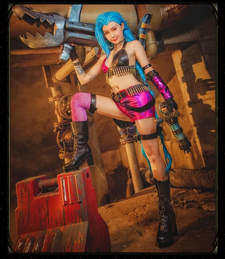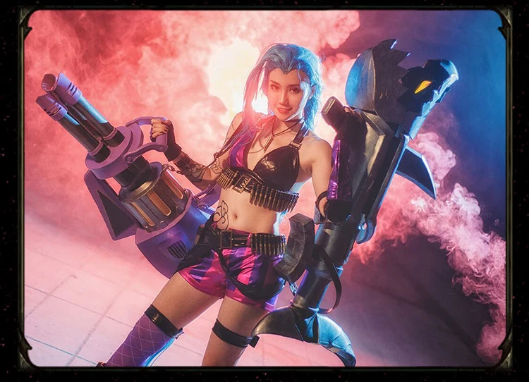 Лидер продаж! Игра LoL Crit лоли костюм Джинкс костюм Jinx; Два слоя кожи волшебный форма синий парики для волос для женщин, для девочек, одежда для вечеринки