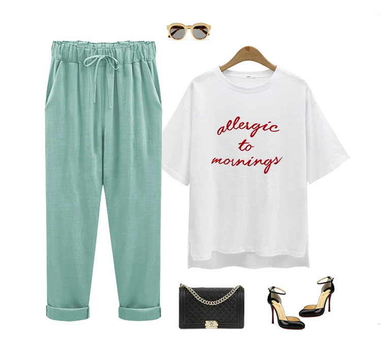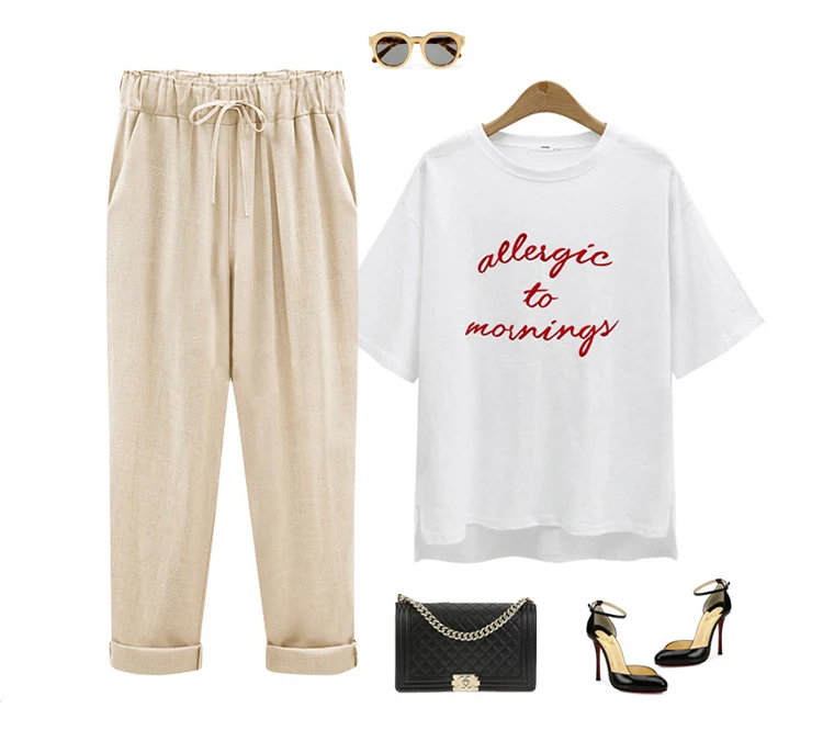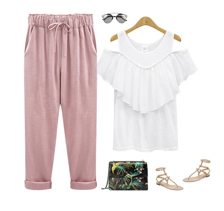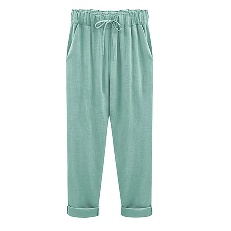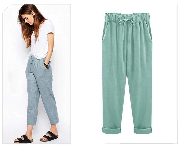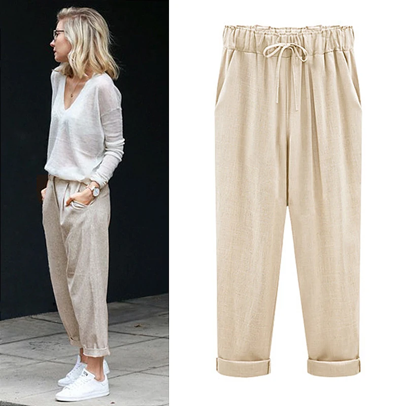 Модные кружевные женские брюки из хлопка и льна, эластичные брюки до щиколотки с высокой талией, повседневные свободные облегающие летние брюки для женщин, размеры 6XL