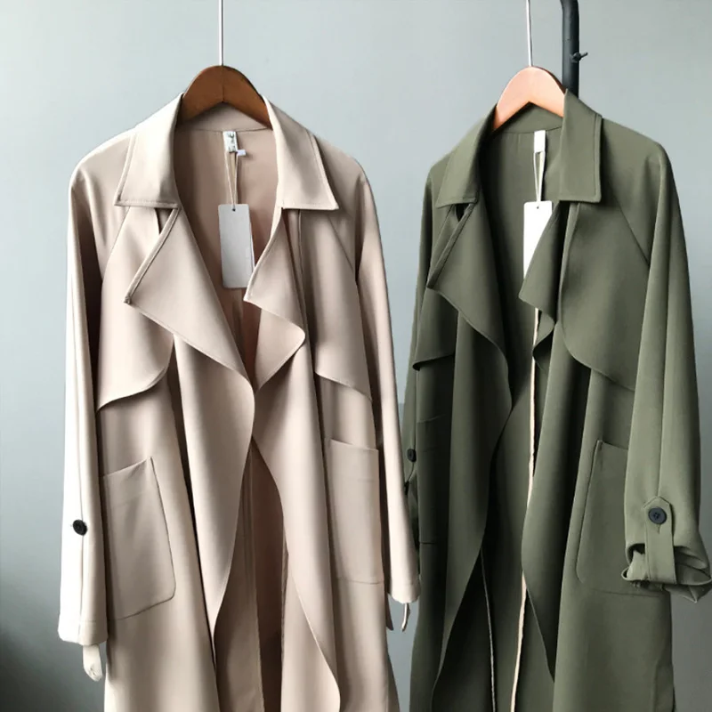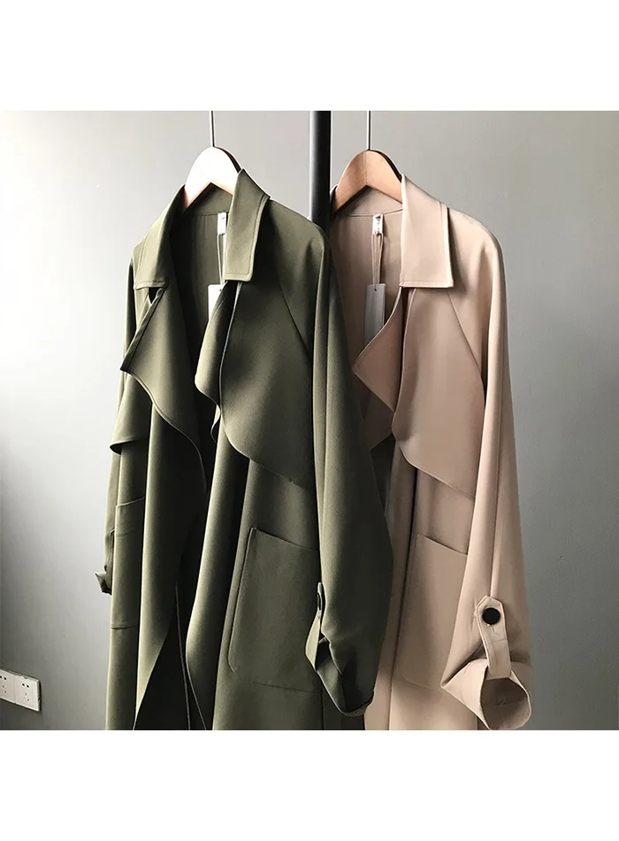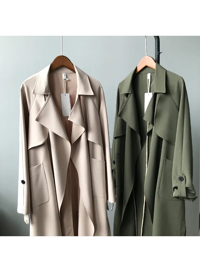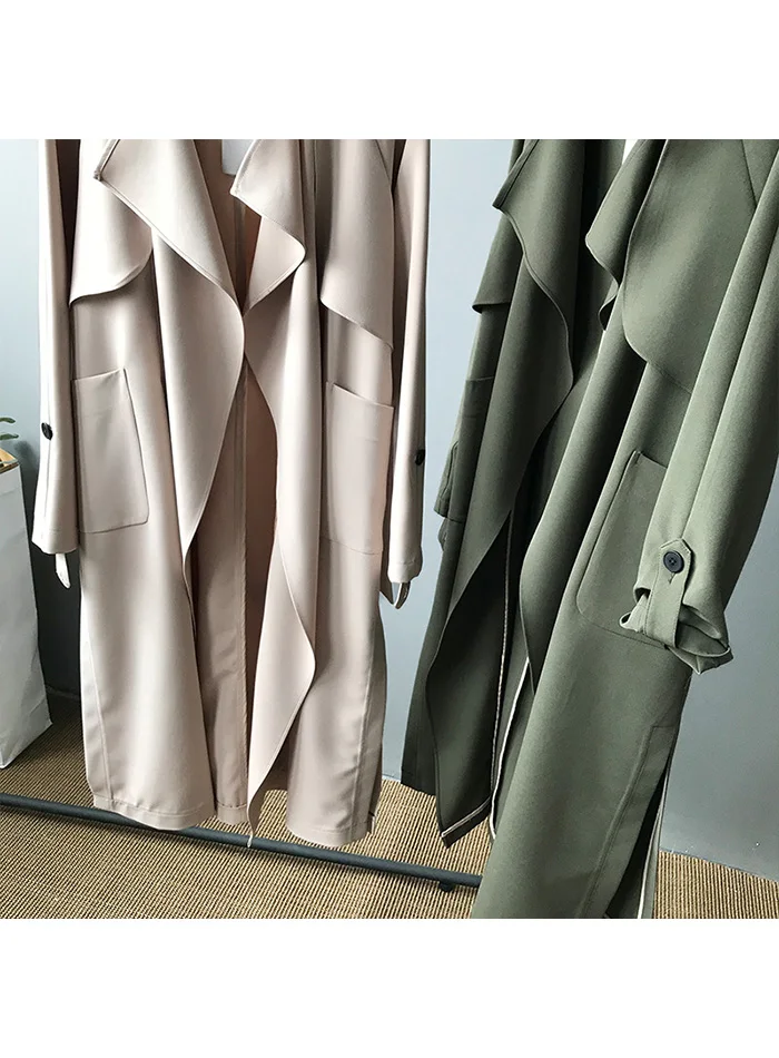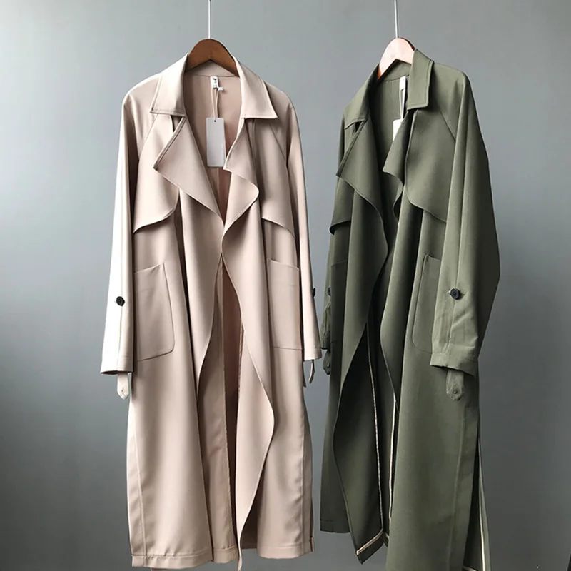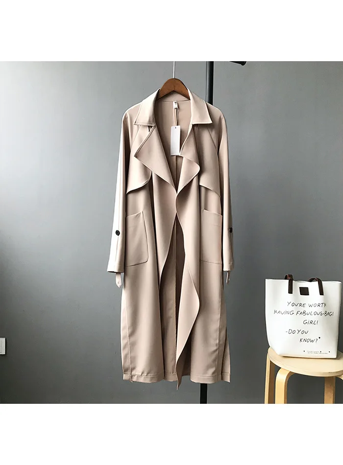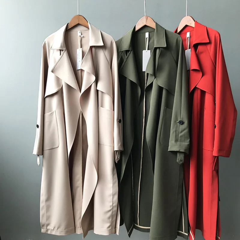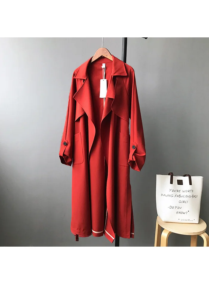 Женское длинное пальто с поясом, модные Асимметричные тренчи до колена, повседневные приталенные тренчи средней длины красного цвета, 2019