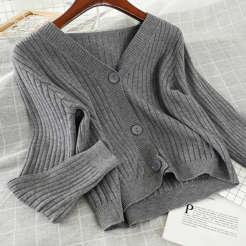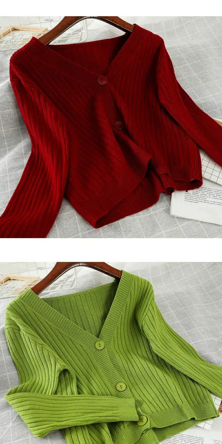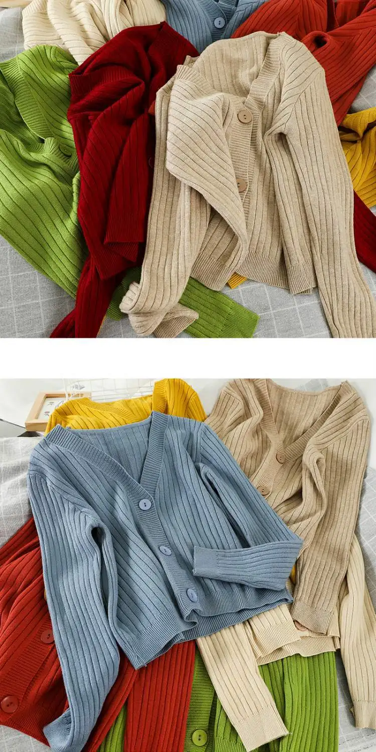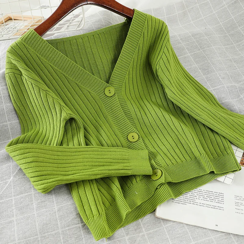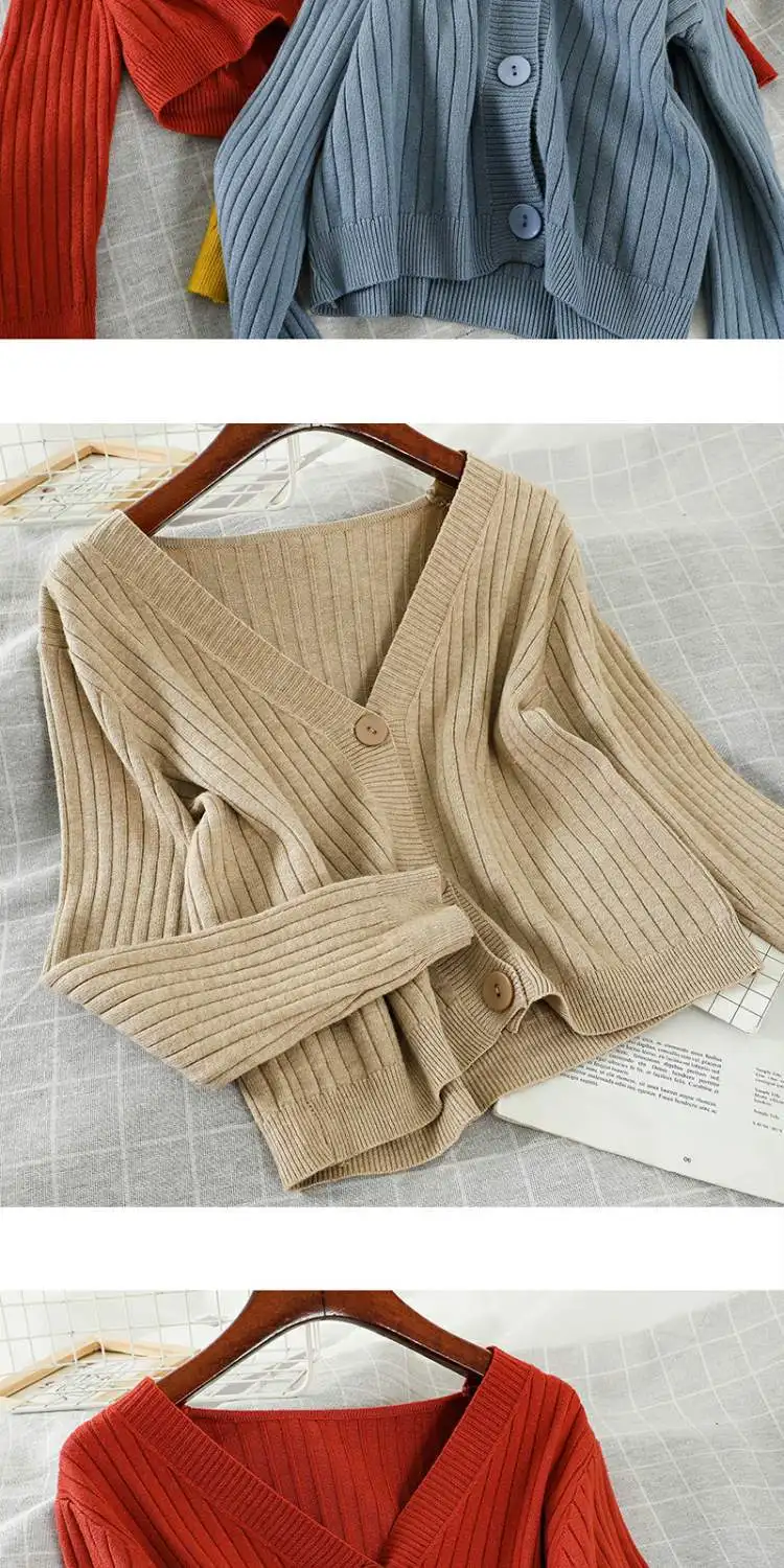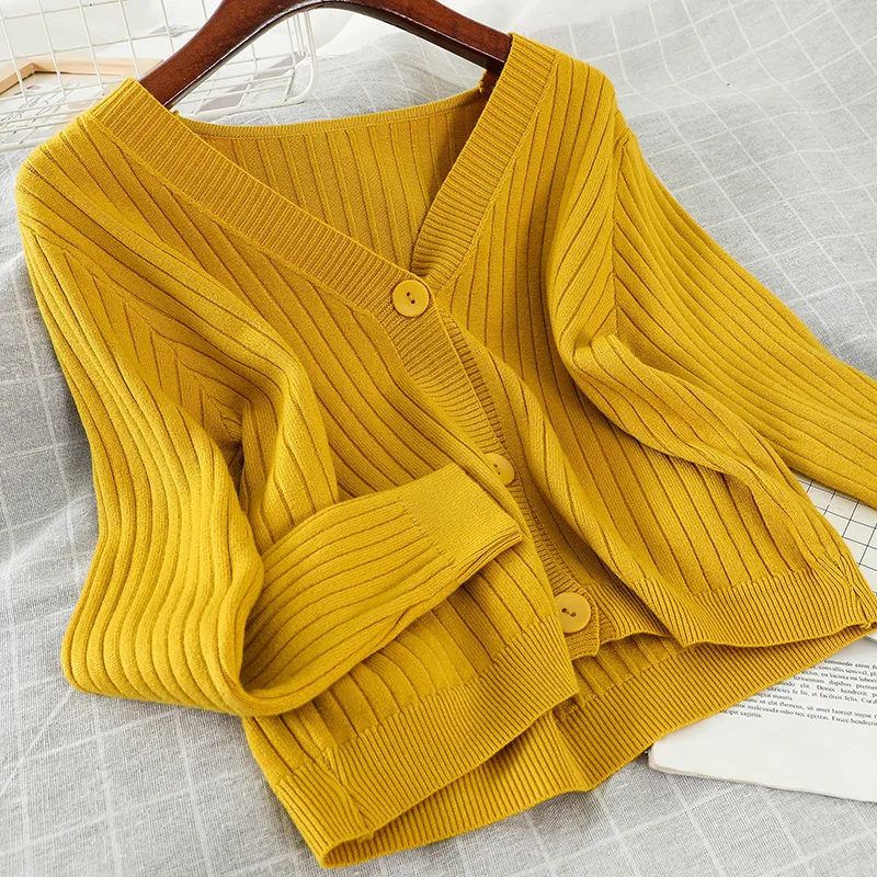 Шерстяной женский кардиган, топы, Весенняя верхняя одежда 2021, короткий свободный Однотонный свитер с V-образным вырезом, пальто, женское среднее пальто