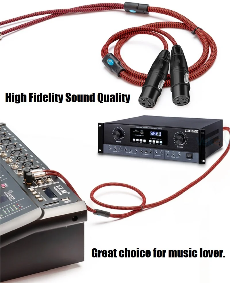 > Проводник Сердечника кабеля:Проводник из бескислородной меди обеспечивает отличную проводимость и оптимальную передачу сигнала. Высококачественная передача звука обеспечивает лучший звук. Аудиокабель подходит для вашего дома-развлечения, система Hi-Fi, микшер, сабвуфер, динамик, музыкальный инструмент и другие аудиоустройства.