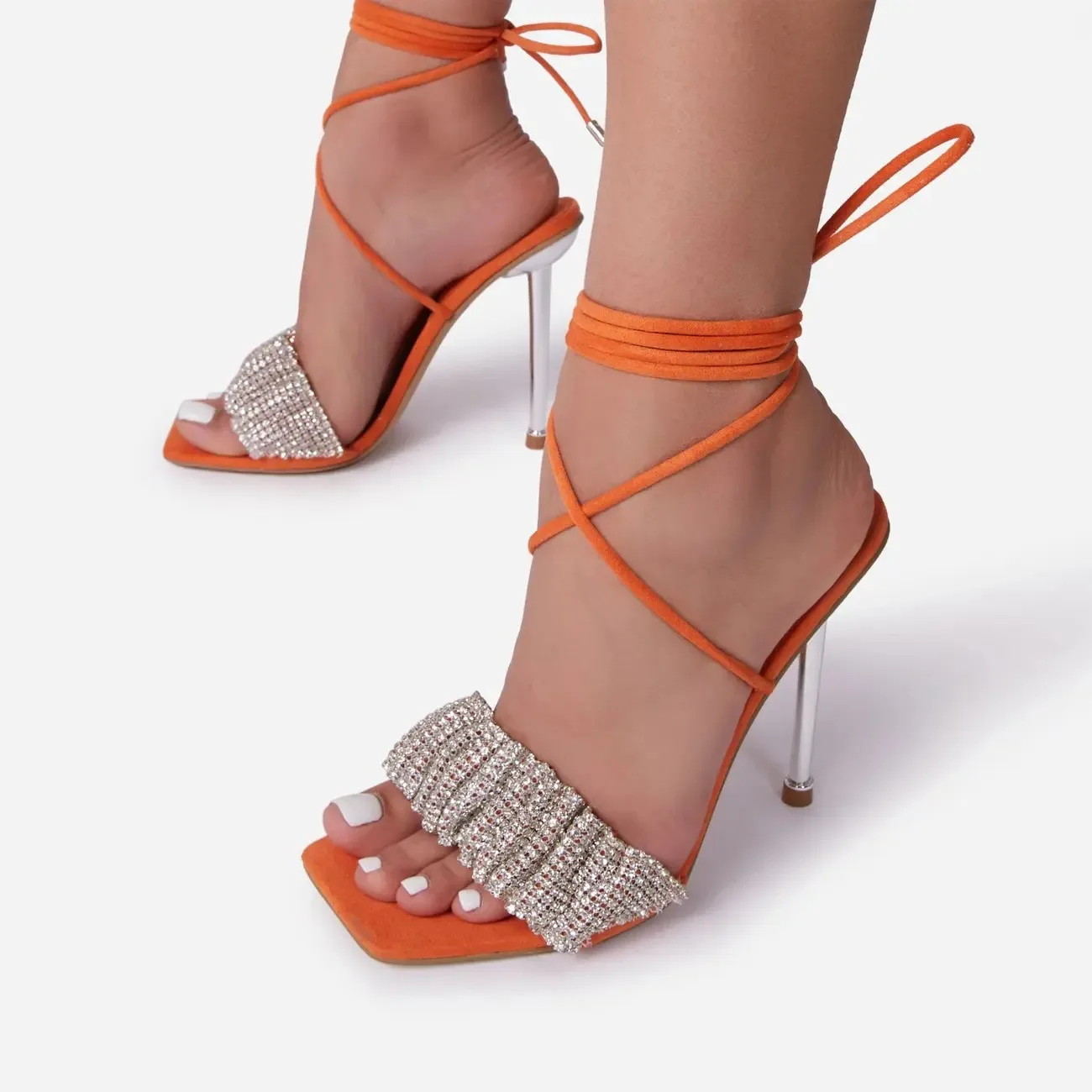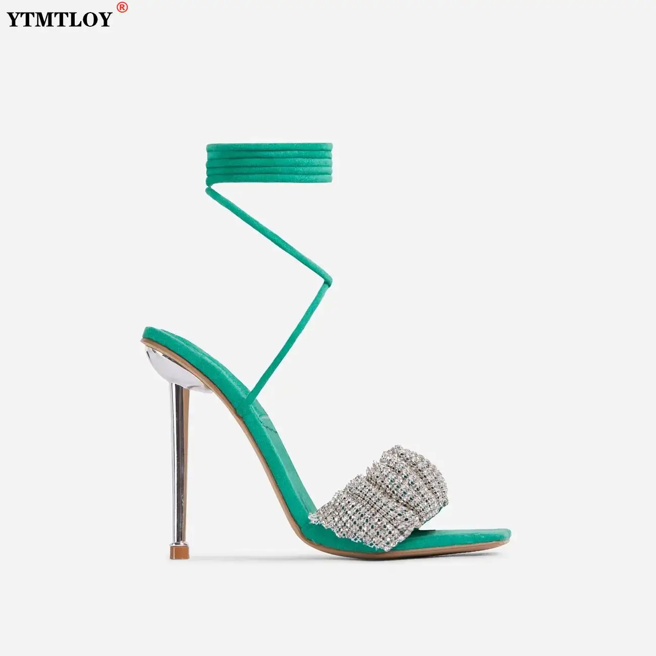 Босоножки женские на высоком каблуке, хрустальные сандалии, свадебн...