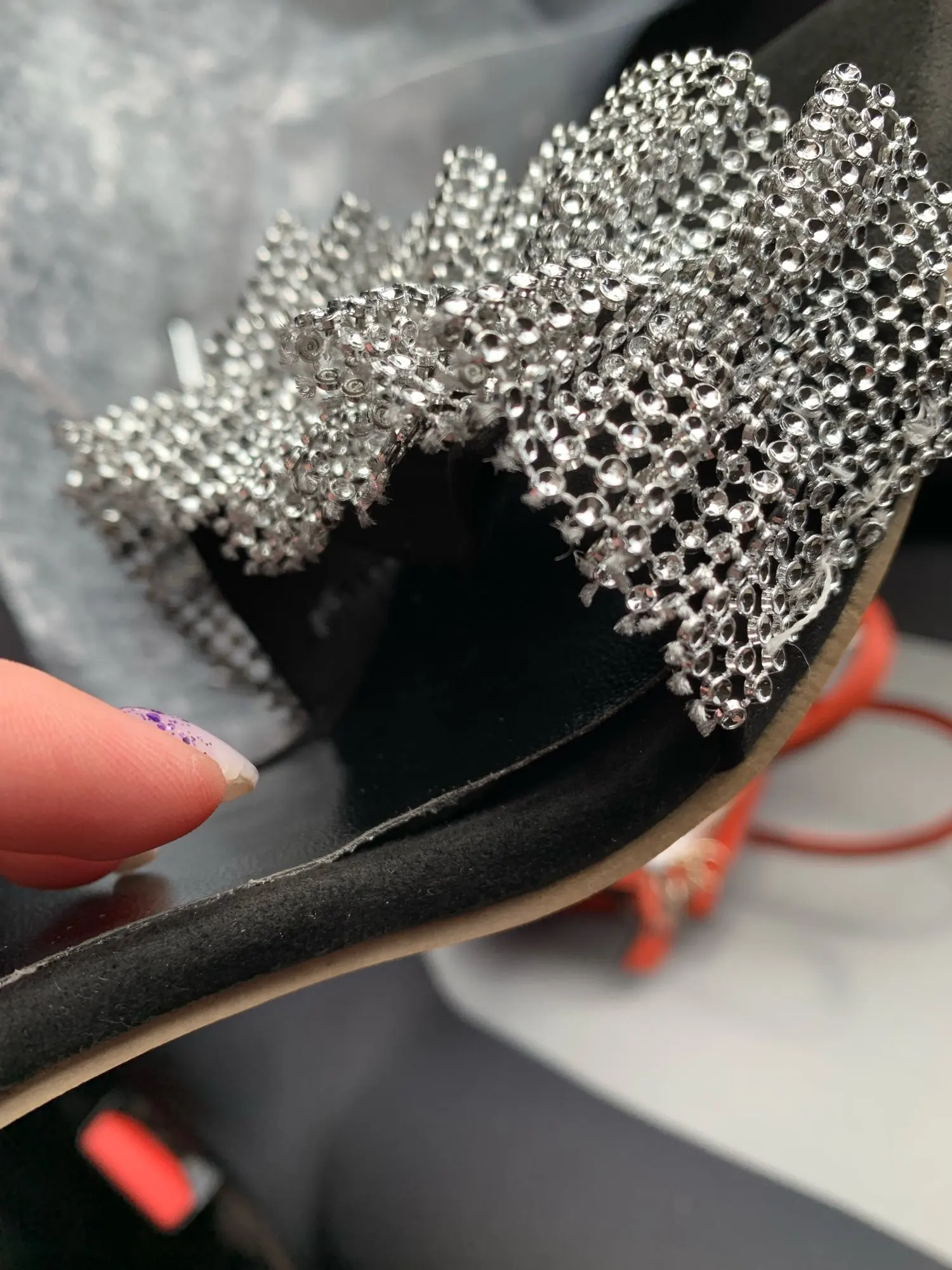 Летние блестящие стразы, сетчатые босоножки с острым носком, ботиль...