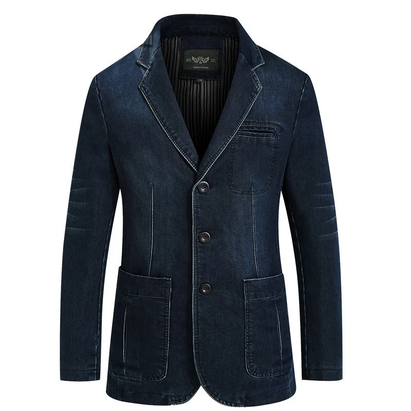 Джинсовый пиджак для мужчин, Модный хлопковый винтажный костюм, пальто для мужчин, синяя Повседневная джинсовая куртка, Новинка осени 2021, мужская одежда
