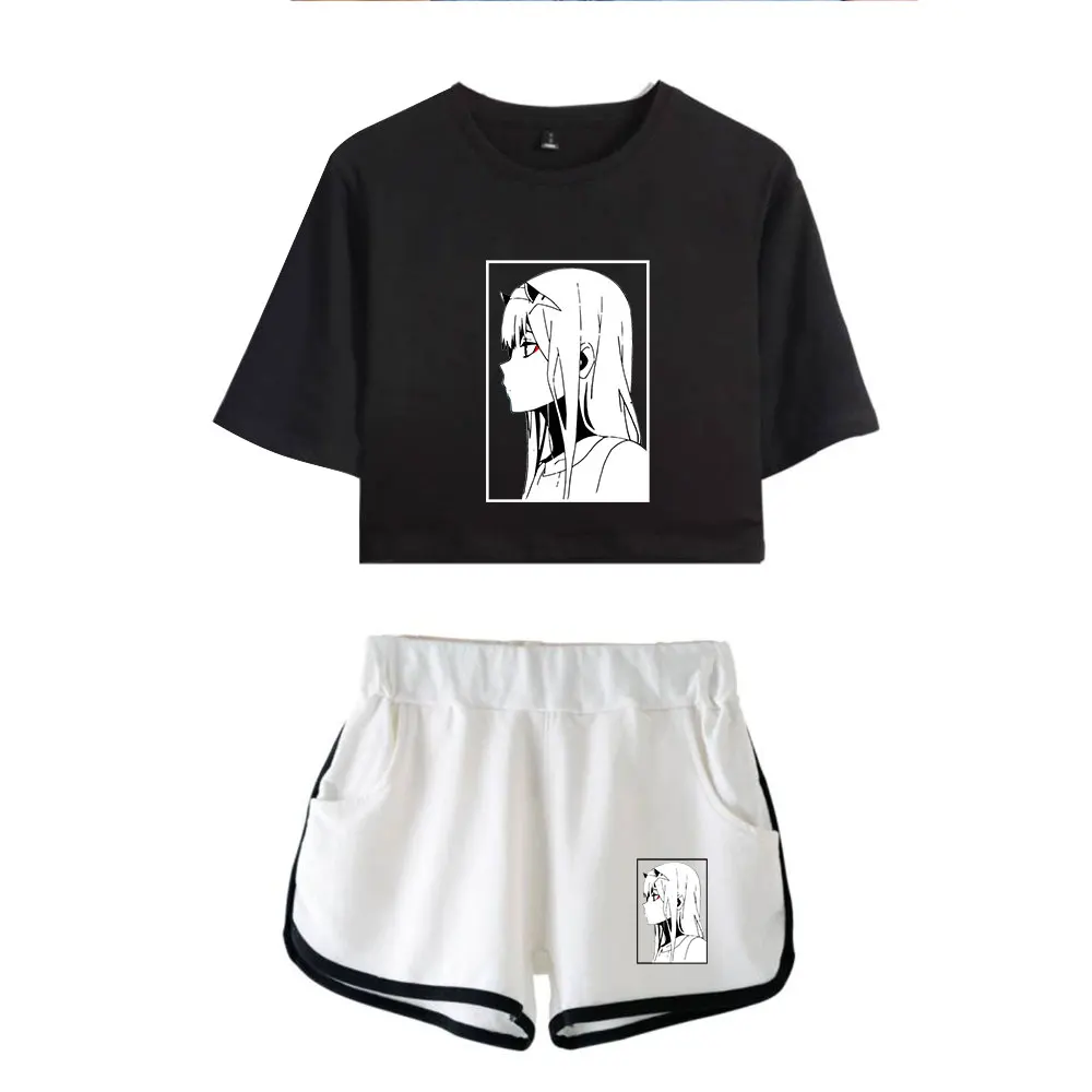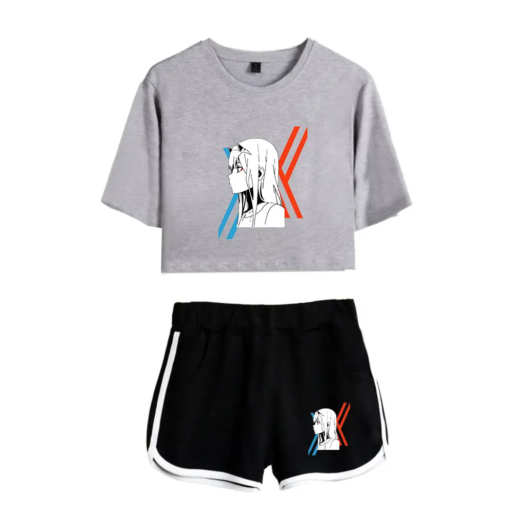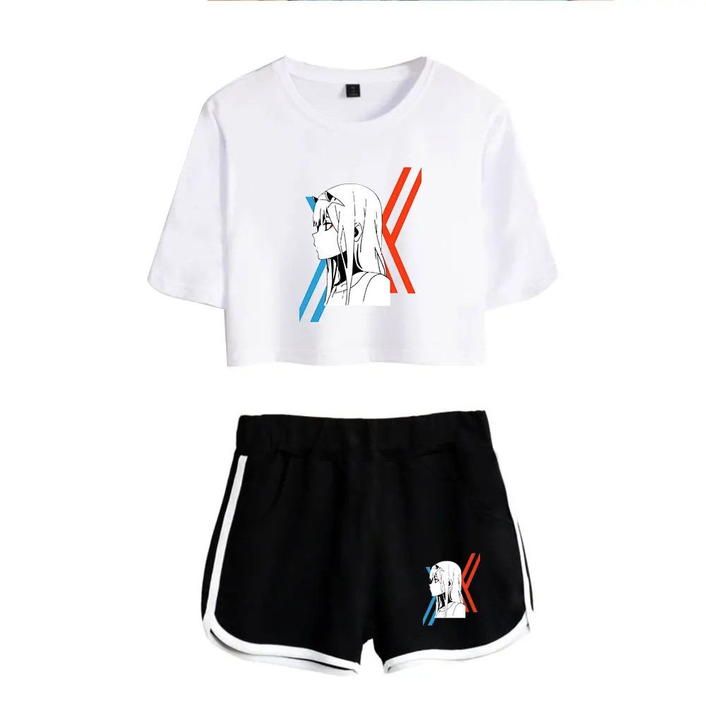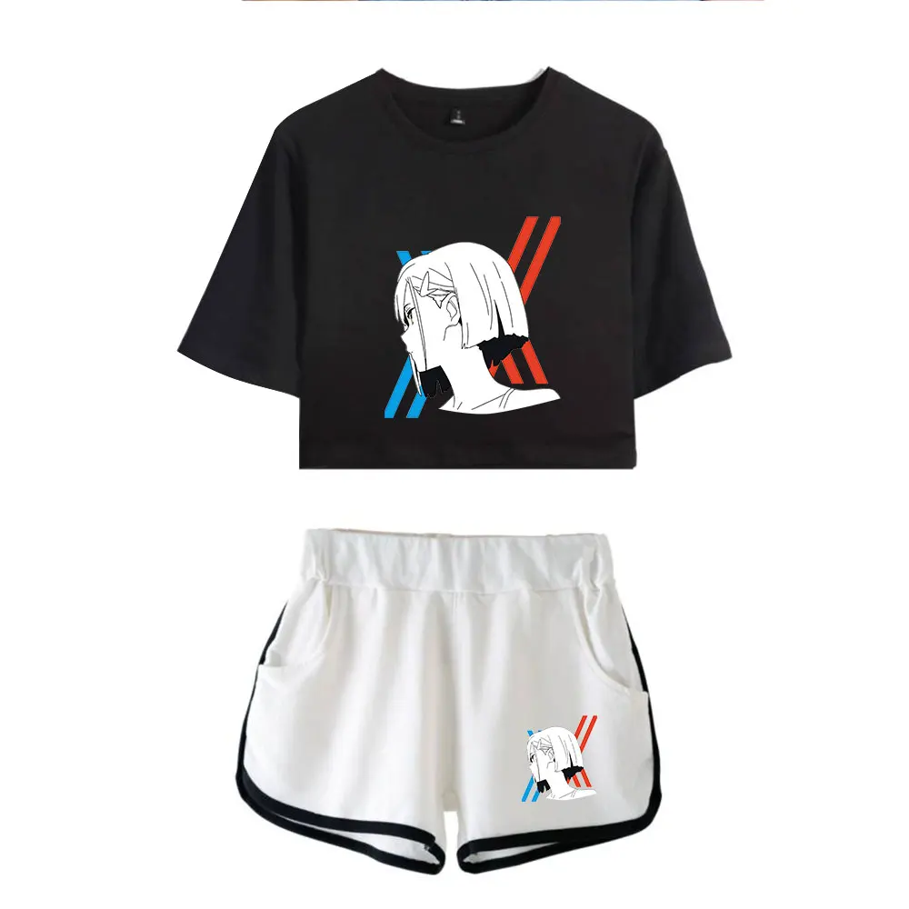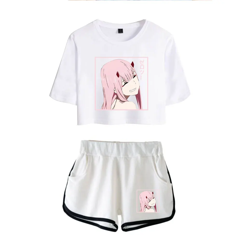 printDARLING in the FRANXX Zero Two Navel T-shirt+Shorts Women