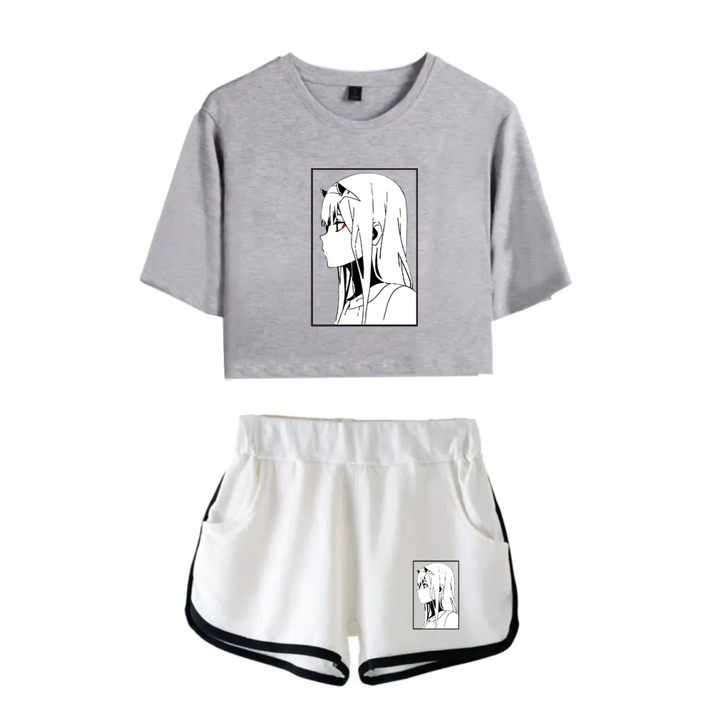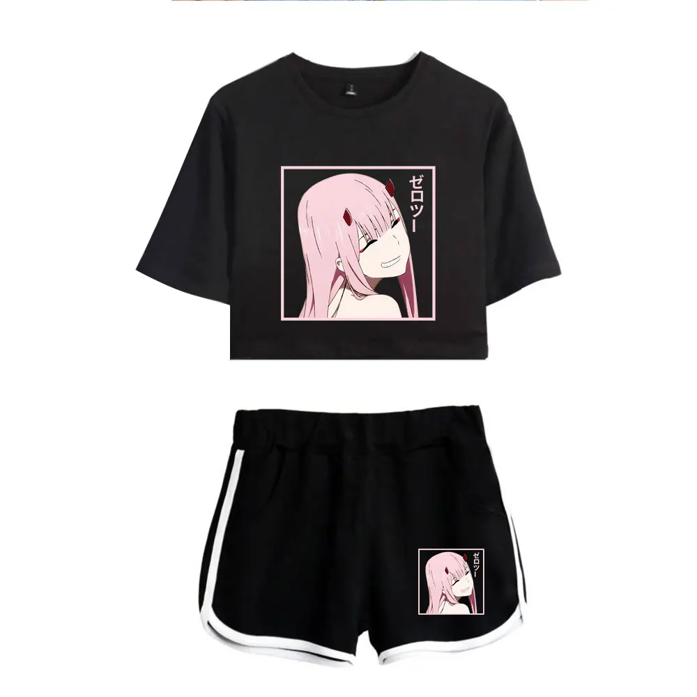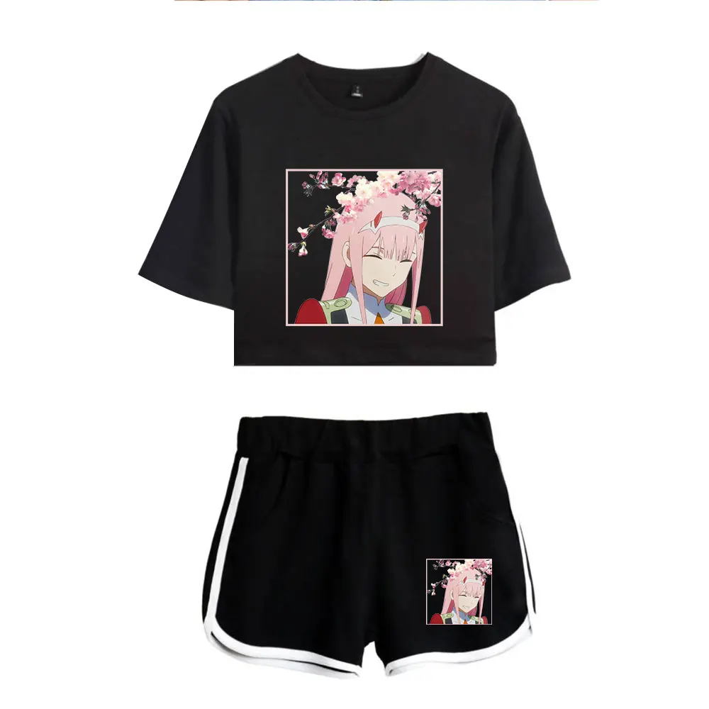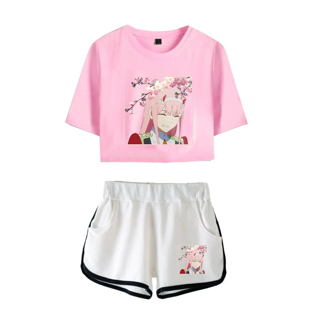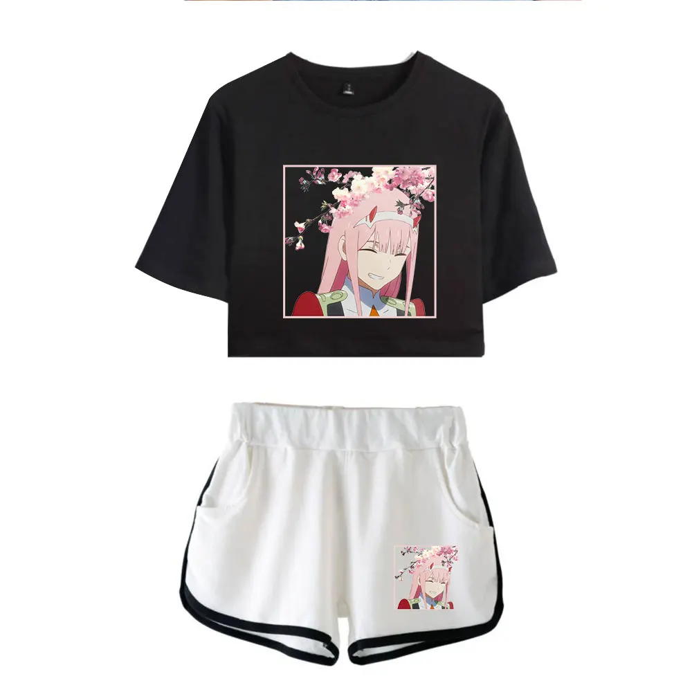 printDARLING in the FRANXX Zero Two Navel T-shirt+Shorts Women