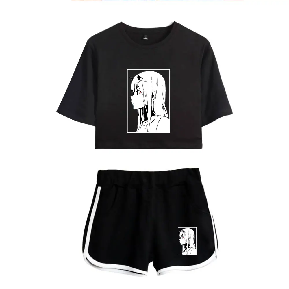 Модный крутой комплект из двух предметов с анимацией любимый в FRANXX женские сексуальные шорты + Милая футболка Pretty Zero два спортивных костюма