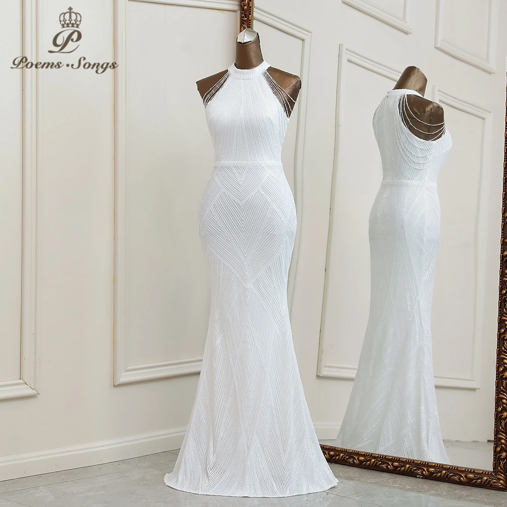Женское вечернее платье-русалка, белое длинное платье для вечеринок