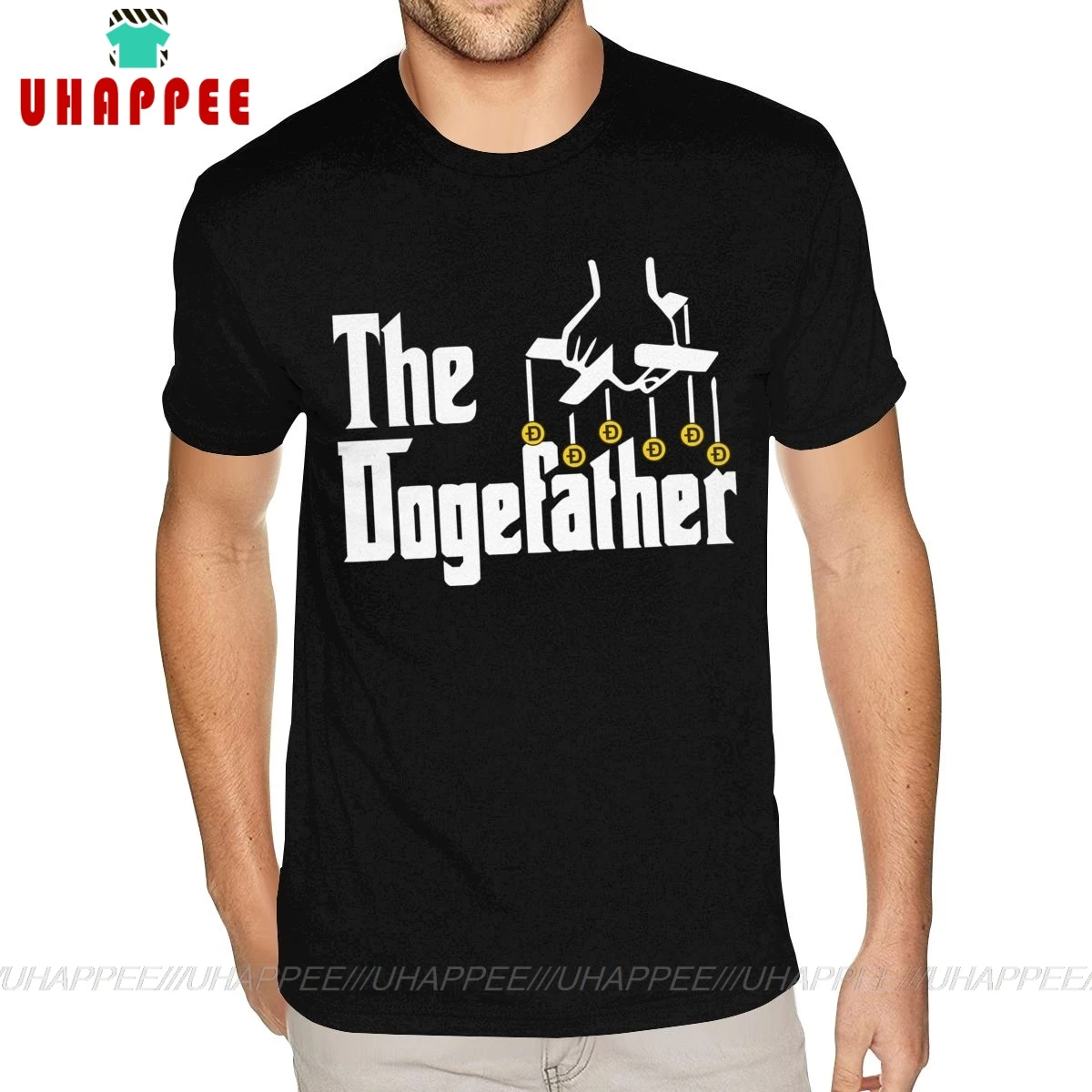 Оптовая продажа, толстые хлопковые черные футболки Dogefather с коротким рукавом и круглым вырезом