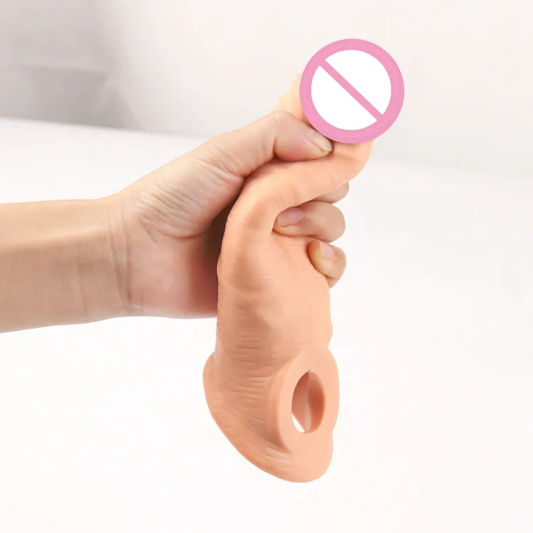 Секс-игрушки для мужчин, женщин, мужчин, фаллоимитатор с длинным рукавом, силиконовый реалистичный пенис, удлиняющий рукав, увеличивающий размер, мужские презервативы, Cockring