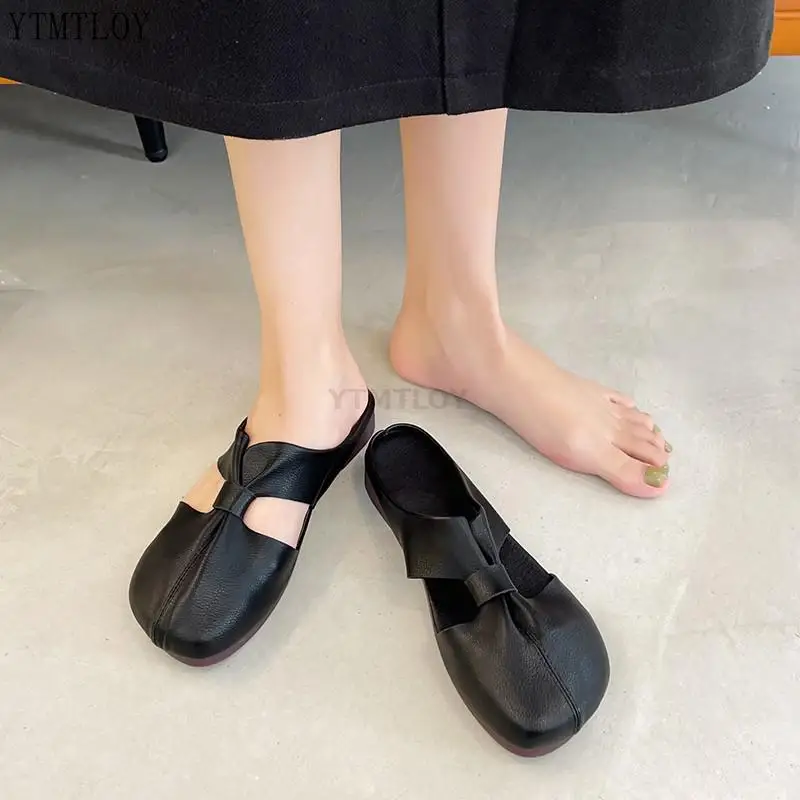 Женские шлепанцы без застежки, брендовые дизайнерские мюли с круглы...