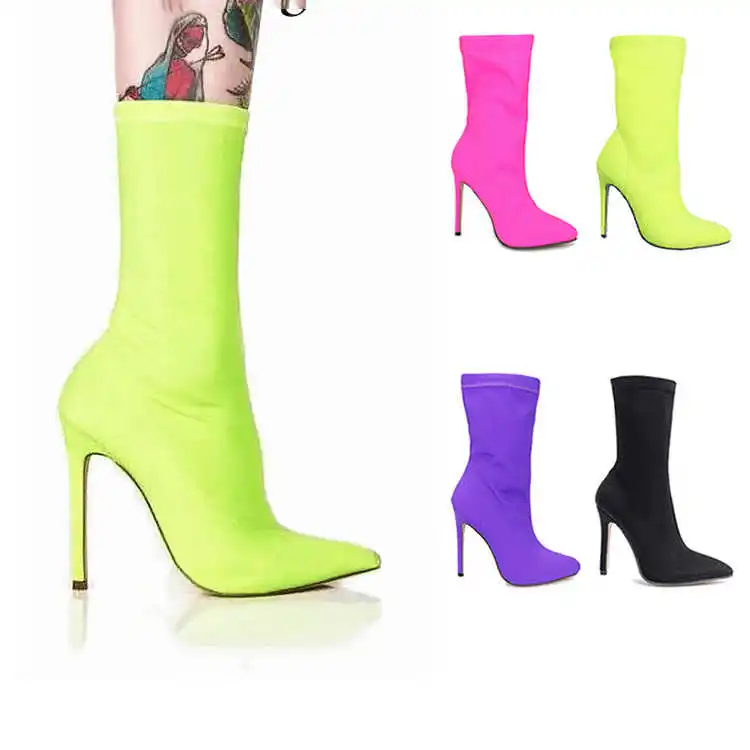 Женские ботинки средней длины, эластичная ткань, остроносые ботинки на тонком каблуке, обувь на высоком каблуке, большой размер 43