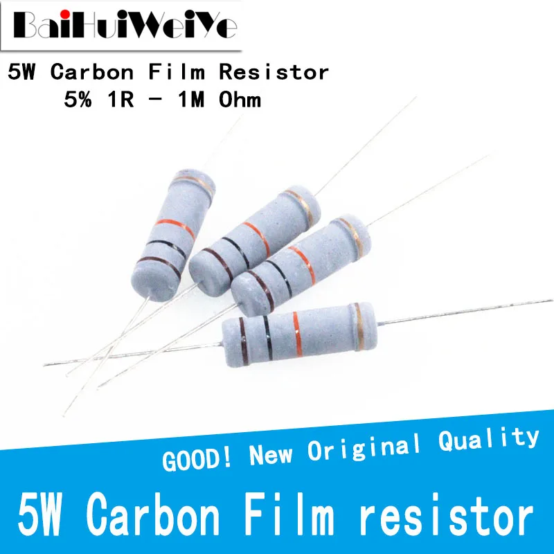 10 шт. 5 Вт угольный осажденный резистор 5% 1R 1 м 2.2R 10R 22R 47R 51R 100R 150R 470R 1K 4,7 K 10K 47K 1 2,2 10 22 47 51 100 150 470 Ом