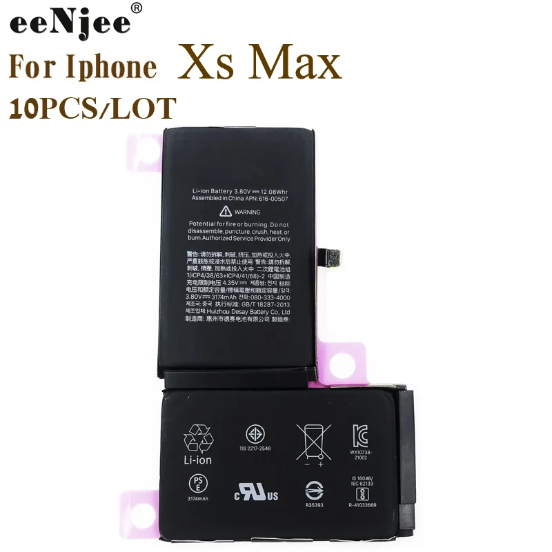 EENJEE 10 шт./лот, сменный мобильный телефон, аккумулятор для iPhone Xs Max, оригинал, IC качество, мобильный телефон, перезаряжаемыйВнимание! Состояние батареи покажет «Сервис» с этим аккумулятором. Это не означает, что аккумулятор неисправен, но все аккумуляторы, замененные на iphone XS Max, похожи на это, независимо от того, являются ли батареи оригинальными или нет.1. Товар: Аккумуляторы 10 шт./лот для Iphone Xs Max2. Батарея: используется высококачественный элемент, 100% реальная емкость, более 500 раз3. Материал ячейки: литий-полимерная чистая кобальтовая батарея, безопасная и долговечная, не опухшая4. Защита: защита от перезарядки, переразряда, перегрузки по току, перенапряжения!5. Гарантия: 12 месяцев6. Качество: ORG класс, работа как оригинал, без оригинального логотипа.