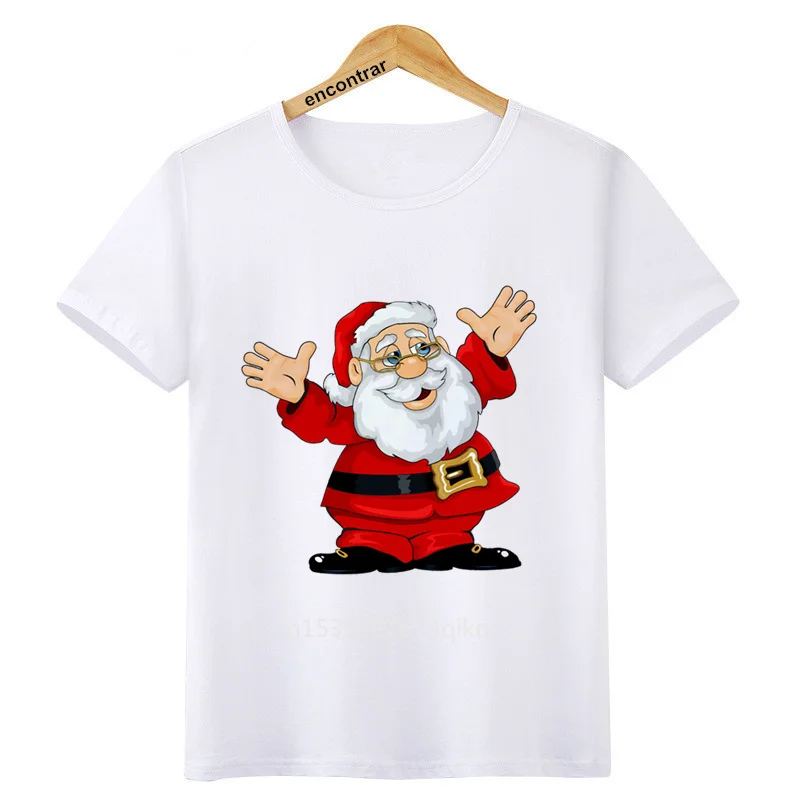 Детская футболка с принтом Санта Клауса и оленей, с коротким рукавом