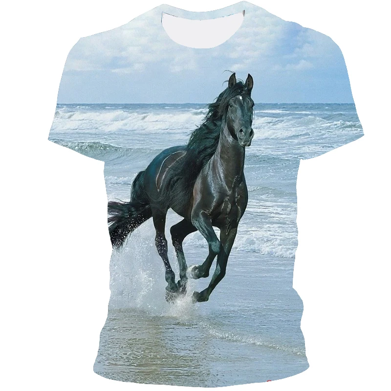 Лето 2021, футболка с круглым вырезом и принтом лошадей, модная футболка с 3d принтом, Одежда для животных, футболка для мужчин и женщин, забавный Топ