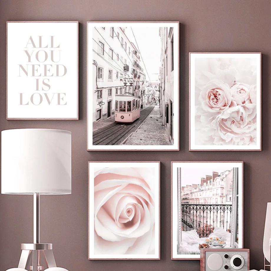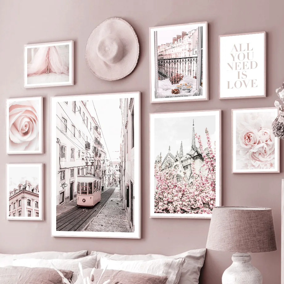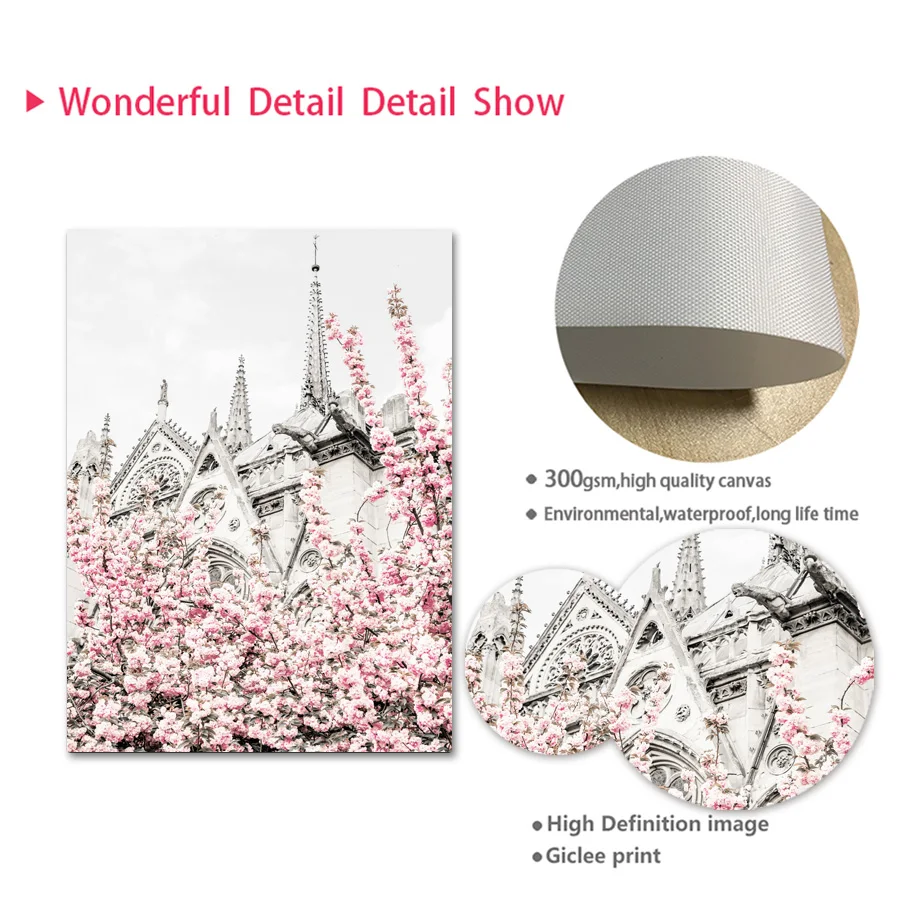 Скандинавские постеры и принты Нотр розовая Сакура девушка-ТРАМ здание настенные художественные картины на холсте настенные картины для декора гостиной