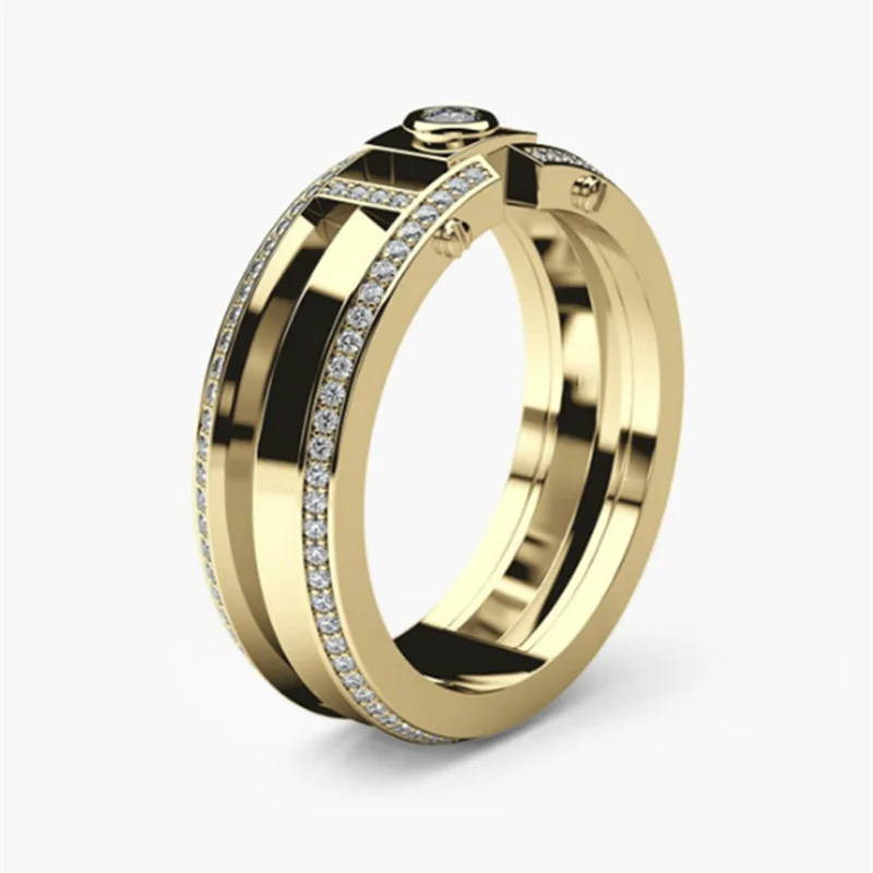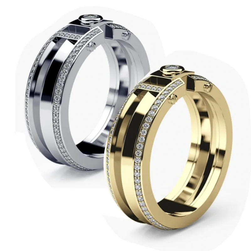 Новые товары, простые золотистые и Серебристые геометрические инкрустированные кристаллами, кольца унисекс Стразы для женщин и мужчин, ювелирные изделия, предложение