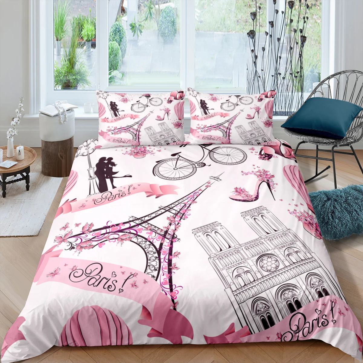 Комплект постельного белья с изображением розовой Эйфелевой башни, с 3D принтом в Парижском Стиле, роскошный, Королевский, одноразмерный, пододеяльник, текстильный Декор для дома