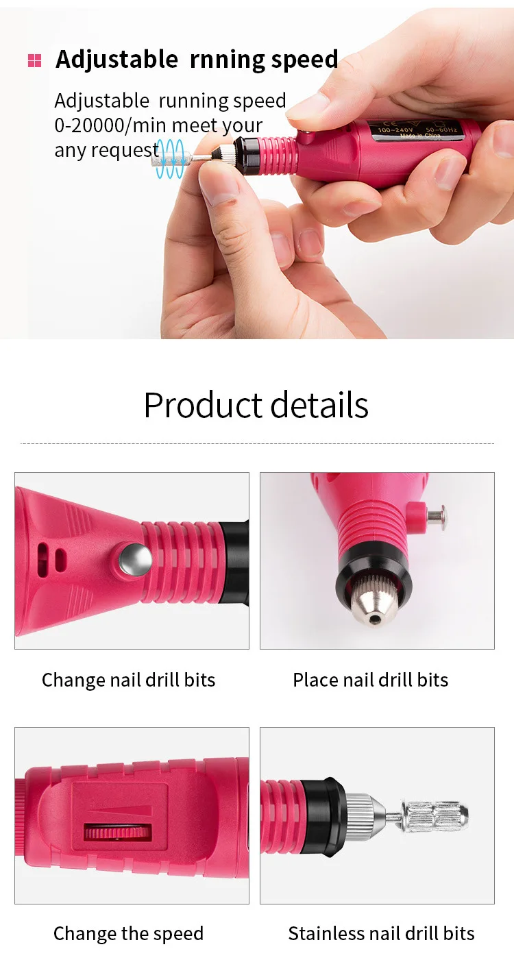 1. Профессиональное сверло для ногтей для акрилового дизайна ногтей.2. Небольшой размер и точный дизайн облегчают удаление омертвевшей кожи возле ваших ногтей.3. Также можно использовать для удаления омертвевшей кожи для ногтей и ногтей.4. Не подвержен ржавчине и долговечности, подходит для профессионального маникюрного салона или личного использования. Описание: Мощность: 9 Вт Скорость: до 20000 об/мин Цвет: розовый, синий, черный, белый, розовый, красный Тип: USB 1. Легкий дизайн для точности. 2. Красивый внешний вид, элегантный, изысканный, обтекаемый дизайн. 3. Форма с прочной структурой оснастки, безопасная и простая в обращении. Посылка включает в себя: 1 x электрическая дрель для ногтей 1 x линия электропередачи 6 сверл 6 шлифовальных лент Примечания:1. Из-за разницы между различными мониторами изображение может не отражать фактический цвет изделия. Мы гарантируем, что модель реального изделия не отличается от представленной на фото.2. Возможны незначительные отклонения в размерах из-за различных измерений вручную.